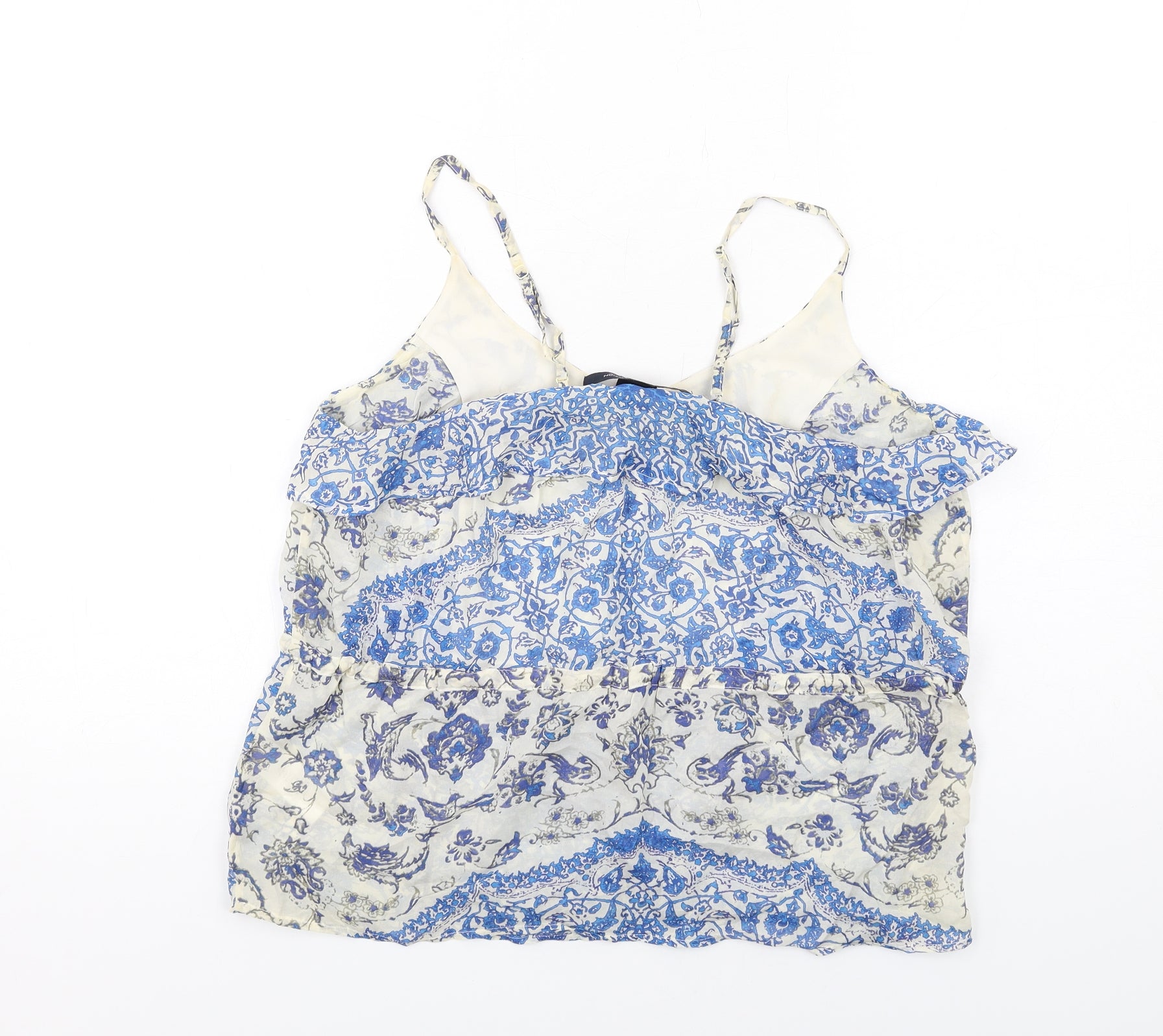 Womens Blue Geometric Silk Basic Tank Size 6 Round Neck