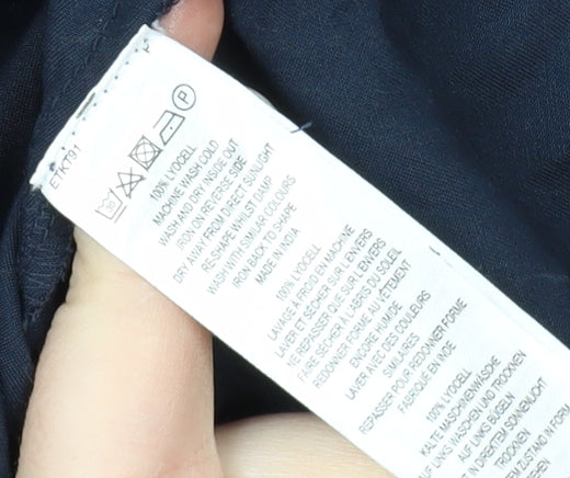 Elevate your wardrobe with this classic yet contemporary French Connection shirt dress in a sophisticated blue hue. Crafted from high-quality woven fabric, predominantly Modal, it offers a luxurious feel against the skin. This dress features a collared neckline combined with a button closure that adds a tailored touch to your ensemble. Its belted waist enhances the silhouette, making it ideal for various body types. The minimalist design, characterized by a no-pattern style, ensures versatility, pairing effortlessly with different accessories or jackets. Designed for women who value comfort and style, this dress is suitable for multiple occasions, from casual outings to informal gatherings. Easy-to-care-for with machine washable fabric, it's perfect for today's fast-paced lifestyle. With a British fashion charm and an attention to detailing, this piece reflects both quality and elegance. Its excellent condition, with only minor crumpling, promises long-lasting wear and continued appeal.
