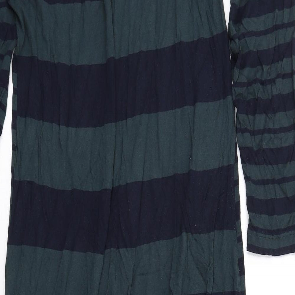 Womens Green Striped Polyester Jumper Dress Size 16 Round Neck Pullover