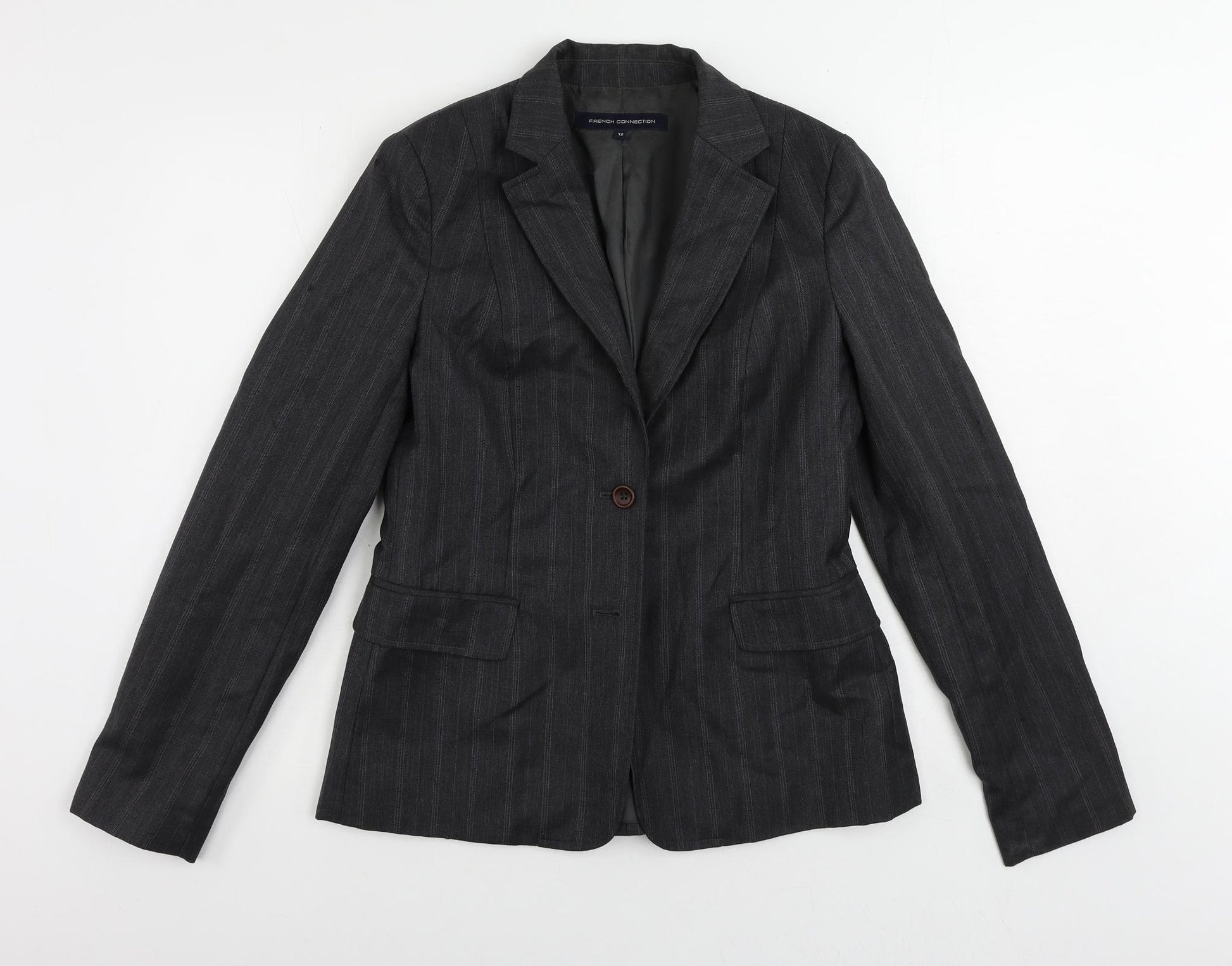 Womens Grey Striped Jacket Blazer Size 12 Button