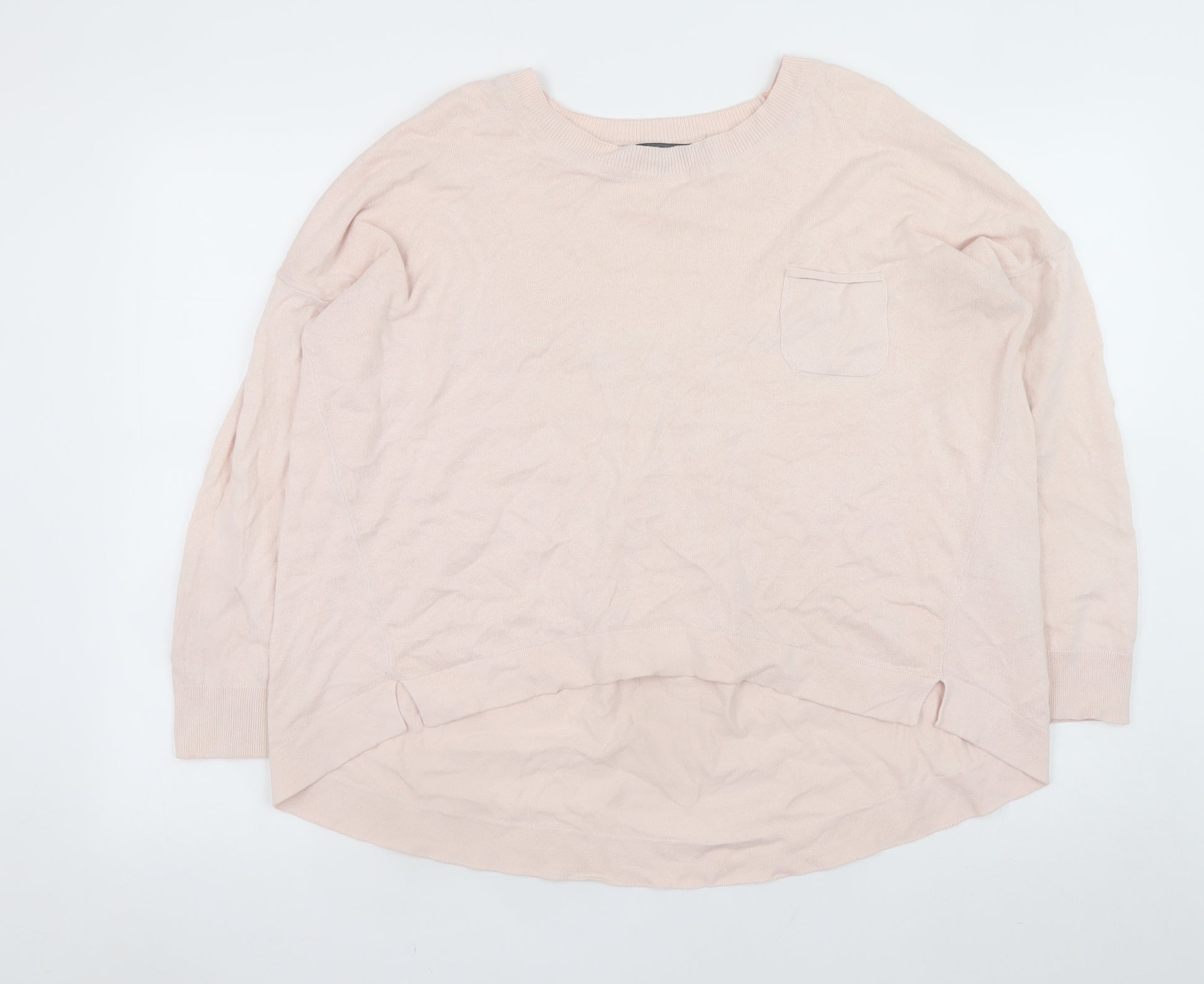 This lovely women’s jumper from French Connection offers timeless casual elegance with a soft touch and relaxed silhouette. Crafted from 100% cotton, it provides lightweight comfort that’s breathable and perfect for layering through spring and autumn. The pale pink colour lends a soft, feminine charm that pairs effortlessly with denim, skirts, or tailored trousers. With a simple crew neckline, long raglan sleeves, and a slightly longer curved back hem, this top provides ease of movement and a flattering drape. A small chest pocket adds a casual detail while maintaining the clean, minimalist look French Connection is known for. The fine knit cotton makes this jumper both practical and stylish, offering a smooth, tight-knit texture ideal for smart-casual and relaxed outfits alike. Designed for everyday wear, it’s machine washable and holds its shape beautifully with proper care. This versatile piece transitions perfectly from home comfort to a chic everyday outfit. Whether worn layered over a crisp shirt or styled on its own, this French Connection jumper fits seamlessly into any wardrobe. Condition is excellent with minimal signs of wear and no visible marks or damage. A perfect pick for those who appreciate understated design with quality detailing, this pink cotton pullover is equal parts effortless, breathable, and fashion-forward.