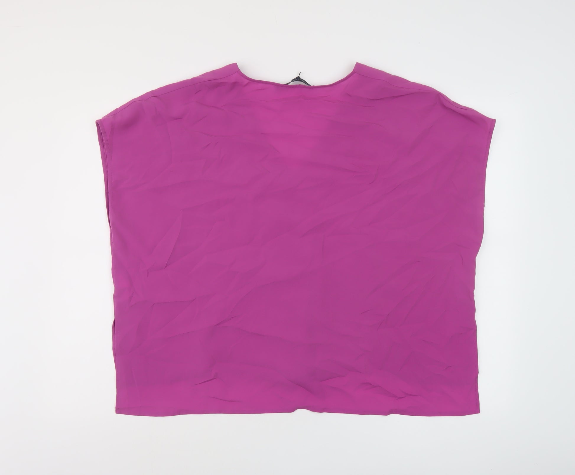 Womens Purple Polyester Basic Blouse Size L V-Neck