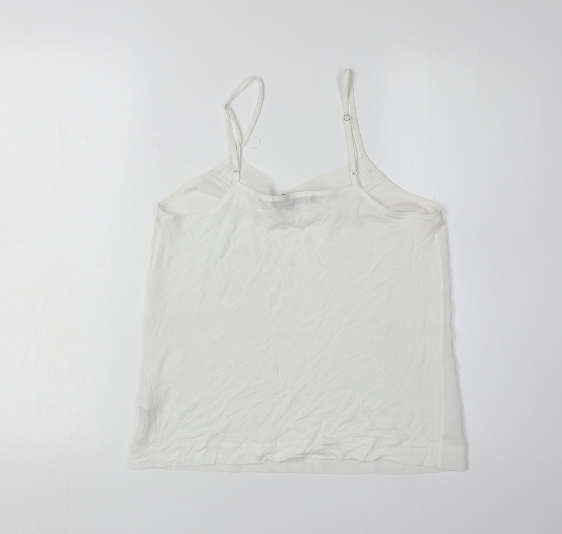 Step out in style with this French Connection women's camisole tank top. Crafted from a blend of high-quality polyester and lyocell, this tank offers a soft and comfortable fit, perfect for the spring and summer seasons. The classic white colour and solid pattern make it a versatile addition to any wardrobe, while the scoop neck and spaghetti straps provide a flattering silhouette. Designed with adjustable straps, this camisole ensures a tailored fit that's both comfortable and chic. Ideal for casual occasions, this tank top features a regular fit, making it a seamless match for any outfit. Whether paired with jeans, shorts, or a skirt, this French Connection camisole promises to elevate your style game. The pullover closure allows for easy wear, and the machine-washable fabric ensures hassle-free maintenance. Priced at only £10.00, this excellent-condition top is a must-have addition to your fashion collection.