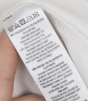 Upgrade your wardrobe with this elegant Women's White Mock Neck Sweatshirt by French Connection. Perfectly tailored for comfortable wear, this piece showcases a chic silhouette with its long sleeves and mock neckline, making it a versatile addition to any outfit. The rich blend of viscose, polyester, and elastane provides a soft feel with a slight stretch, ensuring all-day comfort and ease of movement. Ideal for layering or as a standalone, it features a classic white shade, offering a clean and fresh look. Whether you pair it with jeans for a casual outing or dress it up with accessories for a more formal setting, this sweatshirt embodies both style and functionality. With a machine-washable design, maintenance is effortless, allowing you to focus on looking your best every day.
