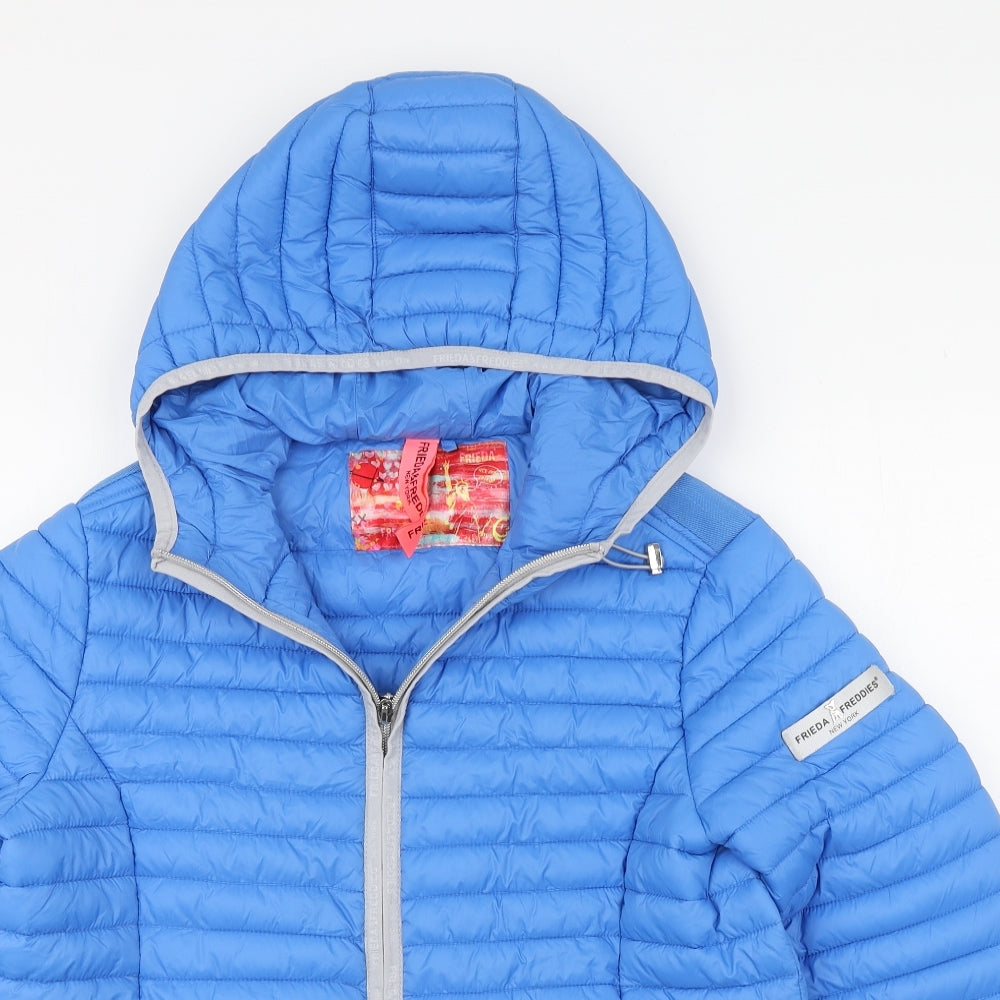 Womens Blue Quilted Coat Size 14 Zip