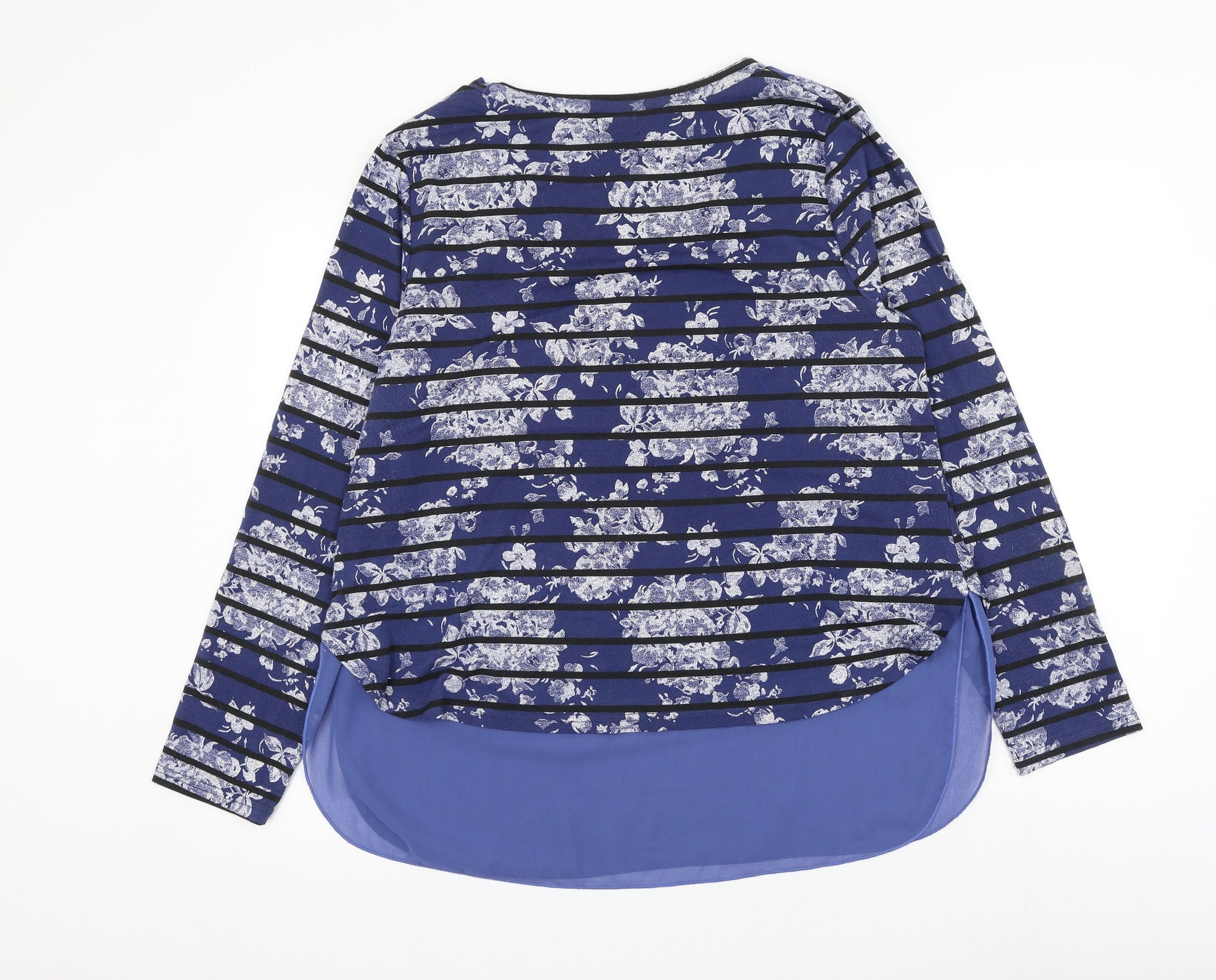 Womens Blue Striped Polyester Basic Blouse Size 16 Scoop Neck - Flower