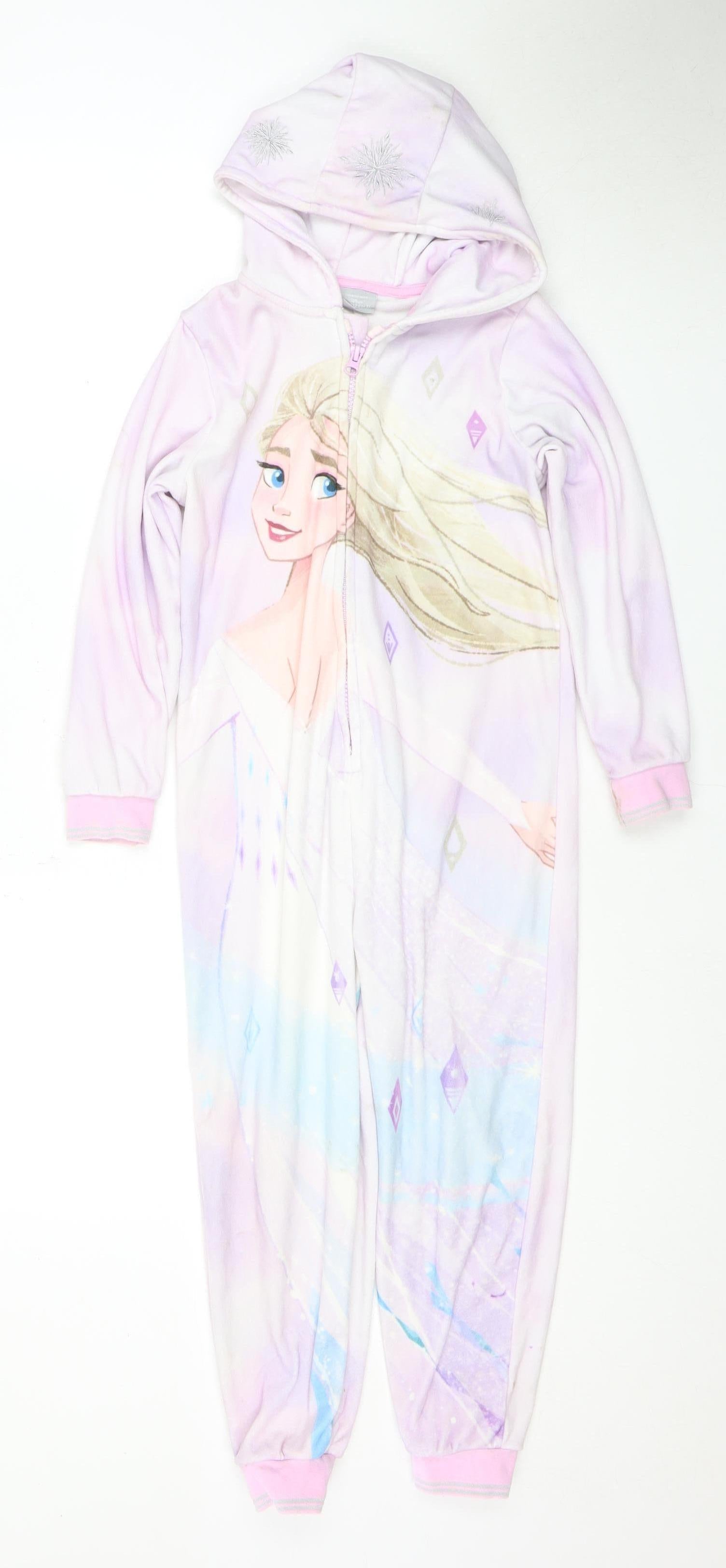 Bring the magic of Disney's Frozen into your home with this delightful girls' pink one-piece nightwear. Featuring the beloved character from Frozen, this outfit is perfect for any young fan. Designed with a charming graphic print, it captures the essence of the enchanting world of Frozen. Made primarily from soft polyester with a touch of elastane, it ensures a comfortable and snug fit. The long sleeves and hood add an extra layer of warmth, making it ideal for bedtime or lounging on chilly evenings. This one-piece is crafted with a convenient zip closure, allowing for easy dressing and undressing. Although it shows slight discolouration, rest assured the garment remains in excellent condition without any noticeable wear or tear. While this piece doesn't have original sales tags, its charm and quality are undeniable. Get ready for a journey to the snowy landscapes of Arendelle with this hooded nightwear that promises warmth, comfort, and a dash of Disney magic.