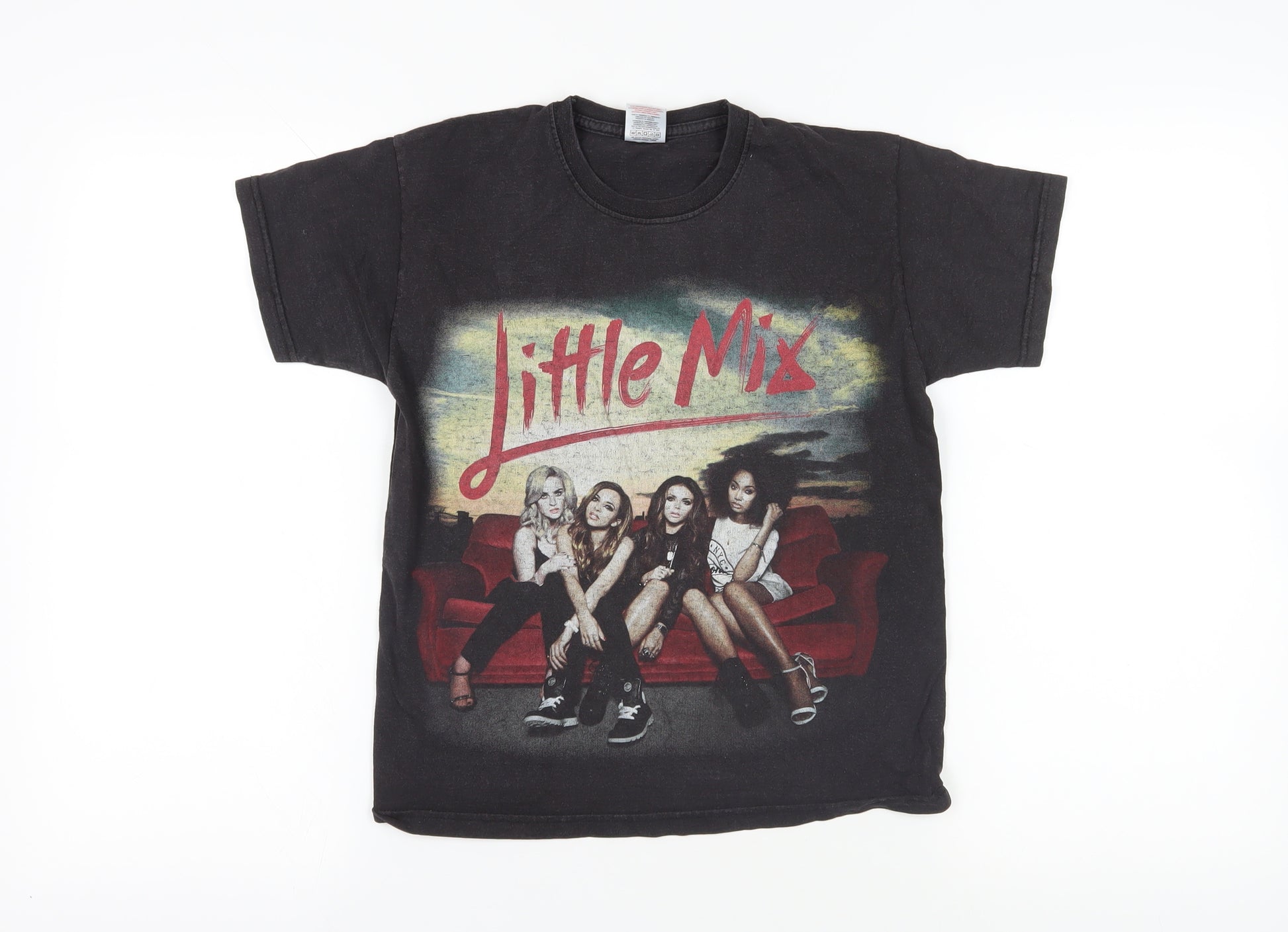 This black Fruit of the Loom T-shirt for girls is a must-have for Little Mix fans. Sporting a vibrant graphic print of the popular girl band on a relaxed fit, this tee is both stylish and comfortable. Perfectly crafted from 100% cotton, it ensures breathability for all seasons. The crew neckline and short sleeves offer a classic look that is easy to pair with jeans or shorts, making it versatile for everyday wear. Whether you're heading to a casual outing or enjoying a weekend at home, this T-shirt perfectly blends comfort and style. With its concert theme and eye-catching design, it's a striking addition to any wardrobe, especially for a fan of the band. Don't miss out on this casual and easy-care piece that adds a touch of music memorabilia to your fashion line-up.