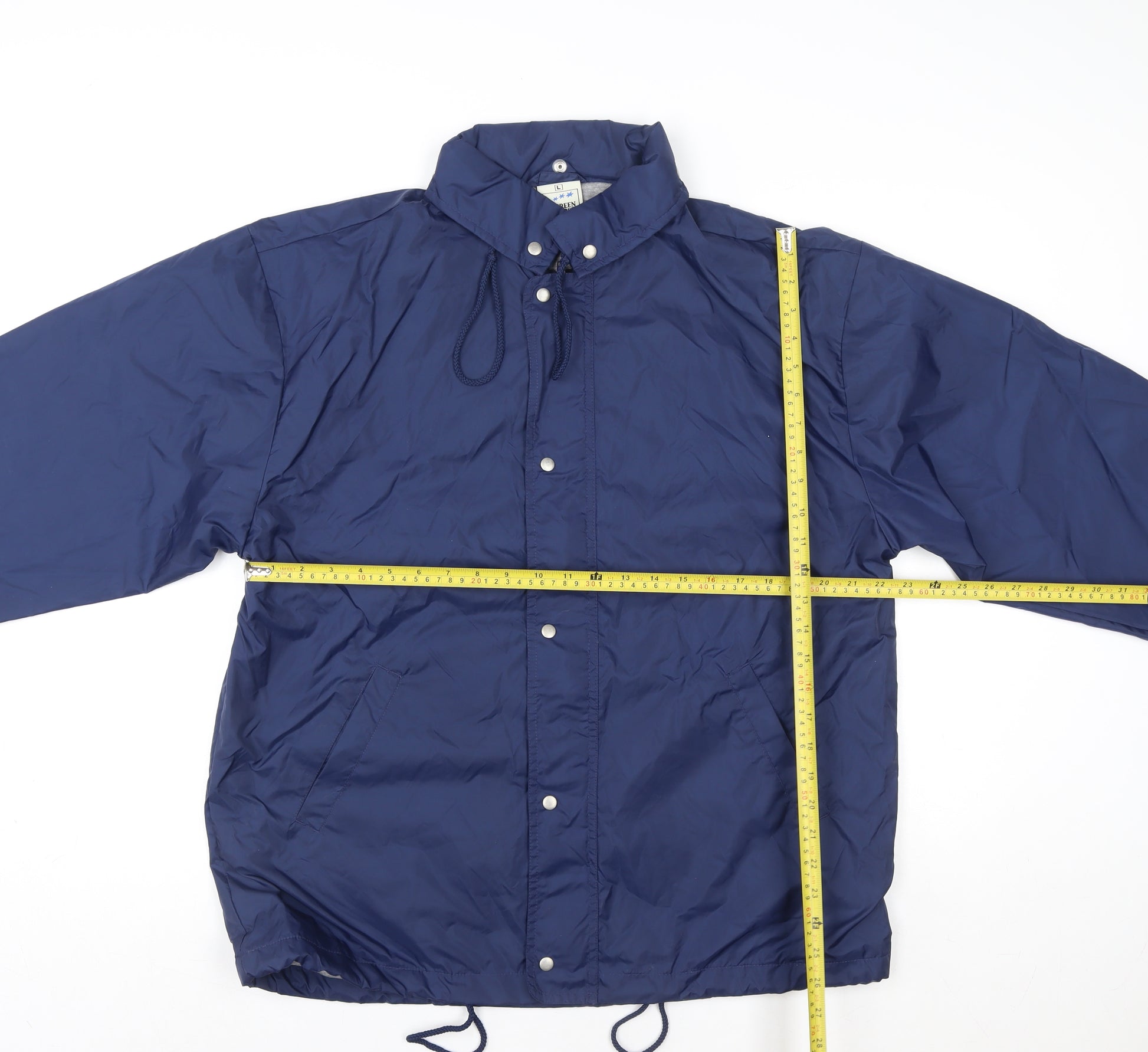 Stay comfortable and stylish with this Fruit of the Loom windbreaker jacket designed for women. Crafted under the 'Screen Stars by Fruit of the Loom Outerwear' range, this lightweight piece is perfect for transitional seasons like spring and autumn. The jacket is made from durable 100% nylon for its outer shell, offering protection against light rain and wind while maintaining a sleek, sporty appearance. Inside, it's fully lined with a 65% polyester and 35% cotton blend that gives a soft touch against your skin and enhances comfort during wear.Presented in a versatile blue shade, this jacket pairs easily with casual outfits and jeans for a practical everyday look. The design includes long sleeves with elasticated cuffs, a front snap closure, adjustable drawcords at the hem and collar for a custom fit, and convenient side pockets. These design features not only add to its functionality but also make it a timeless wardrobe staple ideal for outdoor walks, commuting, or layering over light knitwear.This regular-fit windbreaker offers excellent practicality while maintaining a clean, minimal aesthetic. The collared design, smooth finish, and simple button accents contribute to its classic look, making it suitable for both casual and travel occasions. With its machine washable fabric, caring for this jacket is a breeze, adding to its appeal as an easy-wear outer layer.The condition is rated as very good with only mild creasing visible, indicating careful previous use and no major flaws. This pre-loved jacket remains in great shape, ready to provide many more seasons of reliable wear. A perfect choice if you value functional, casual fashion with a sporty twist.Bring home a piece of quality outerwear combining Fruit of the Loom’s trusted craftsmanship and everyday practicality. This blue nylon windbreaker is a must-have essential that delivers performance, comfort, and effortless style wherever you go.