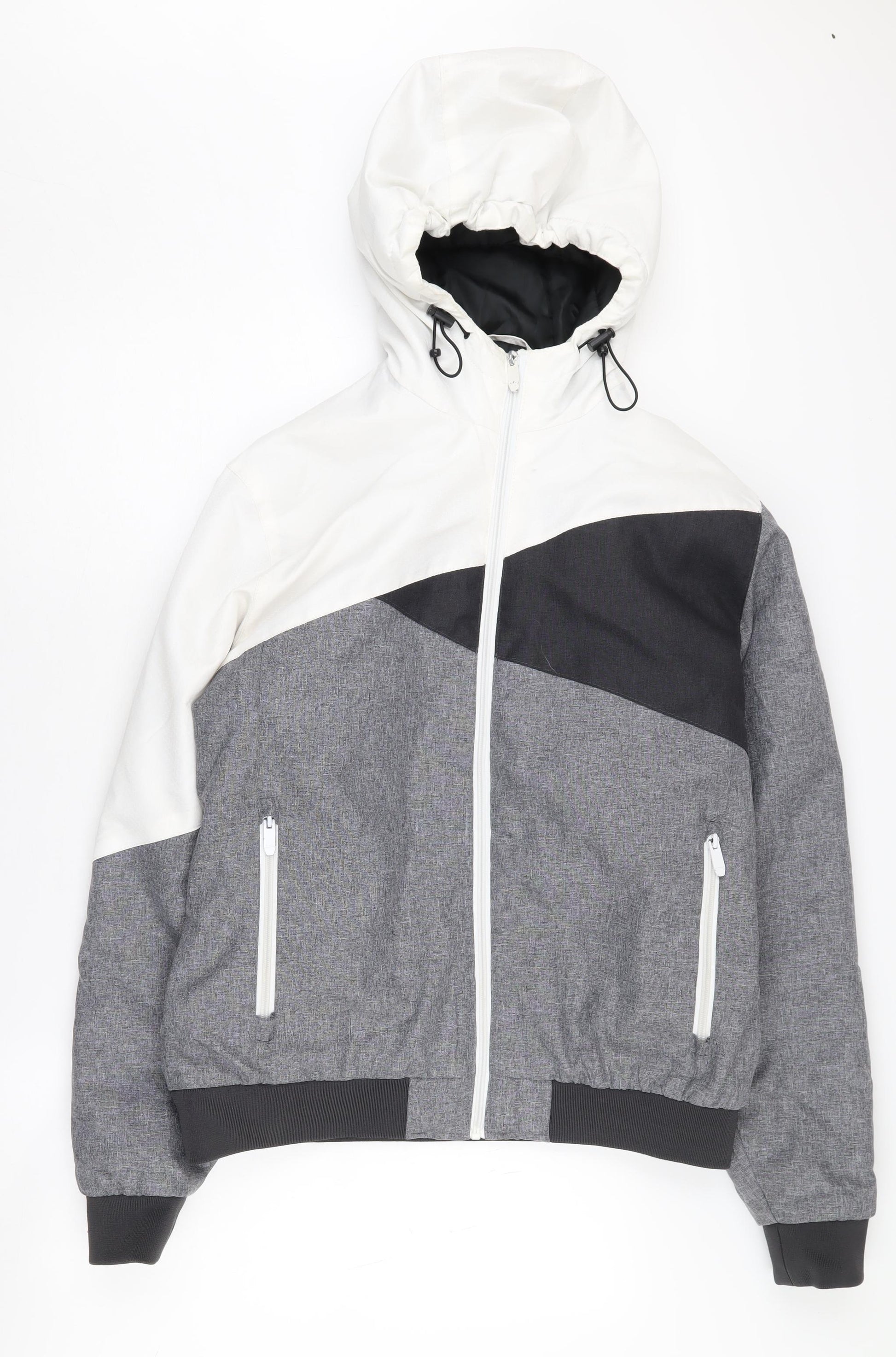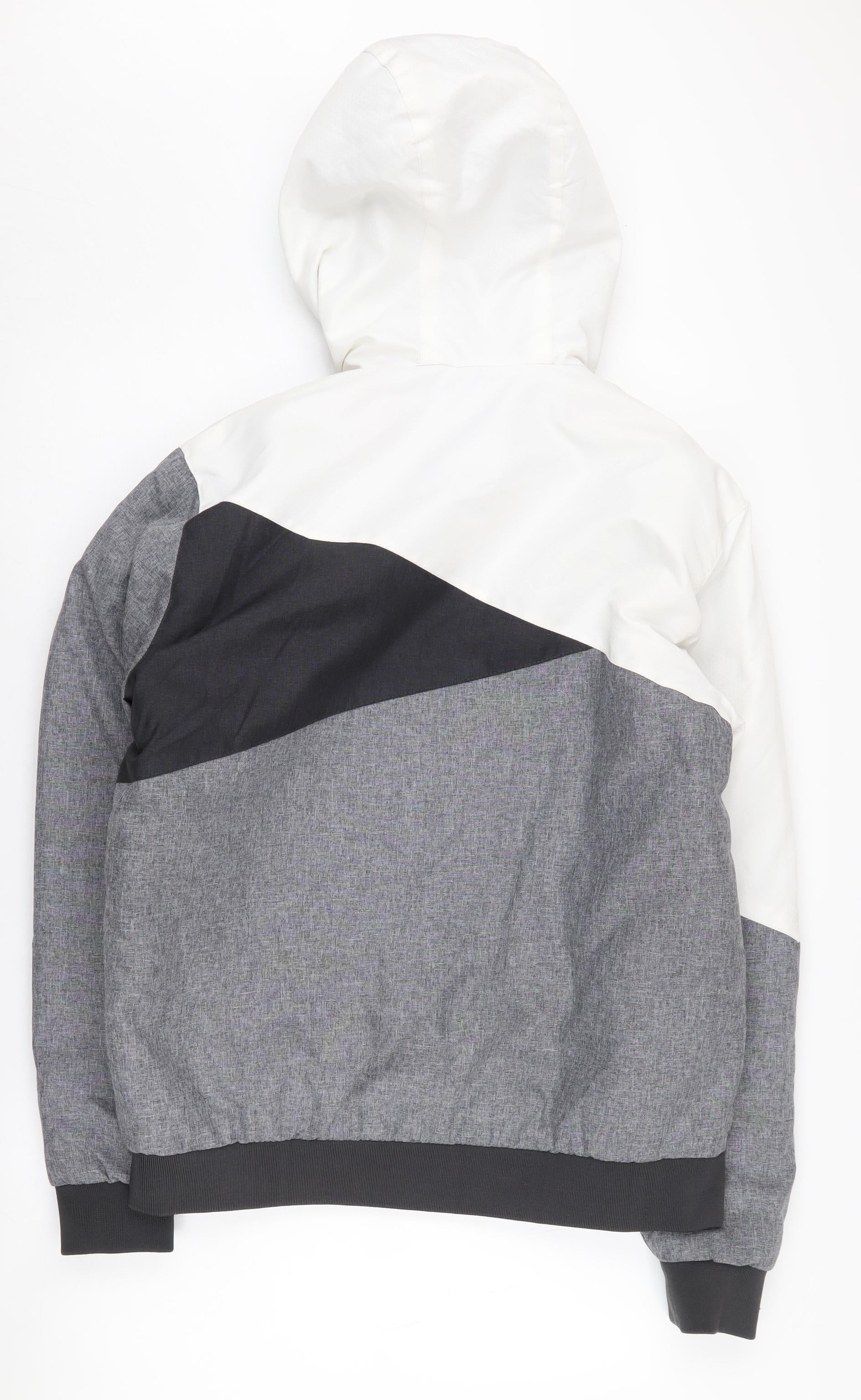 Hollister Men’s White Grey Hooded Windbreaker Jacket Size M