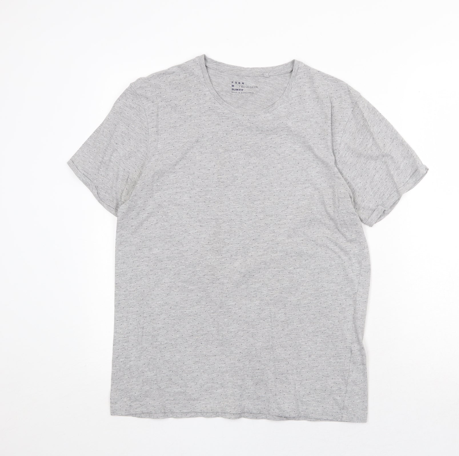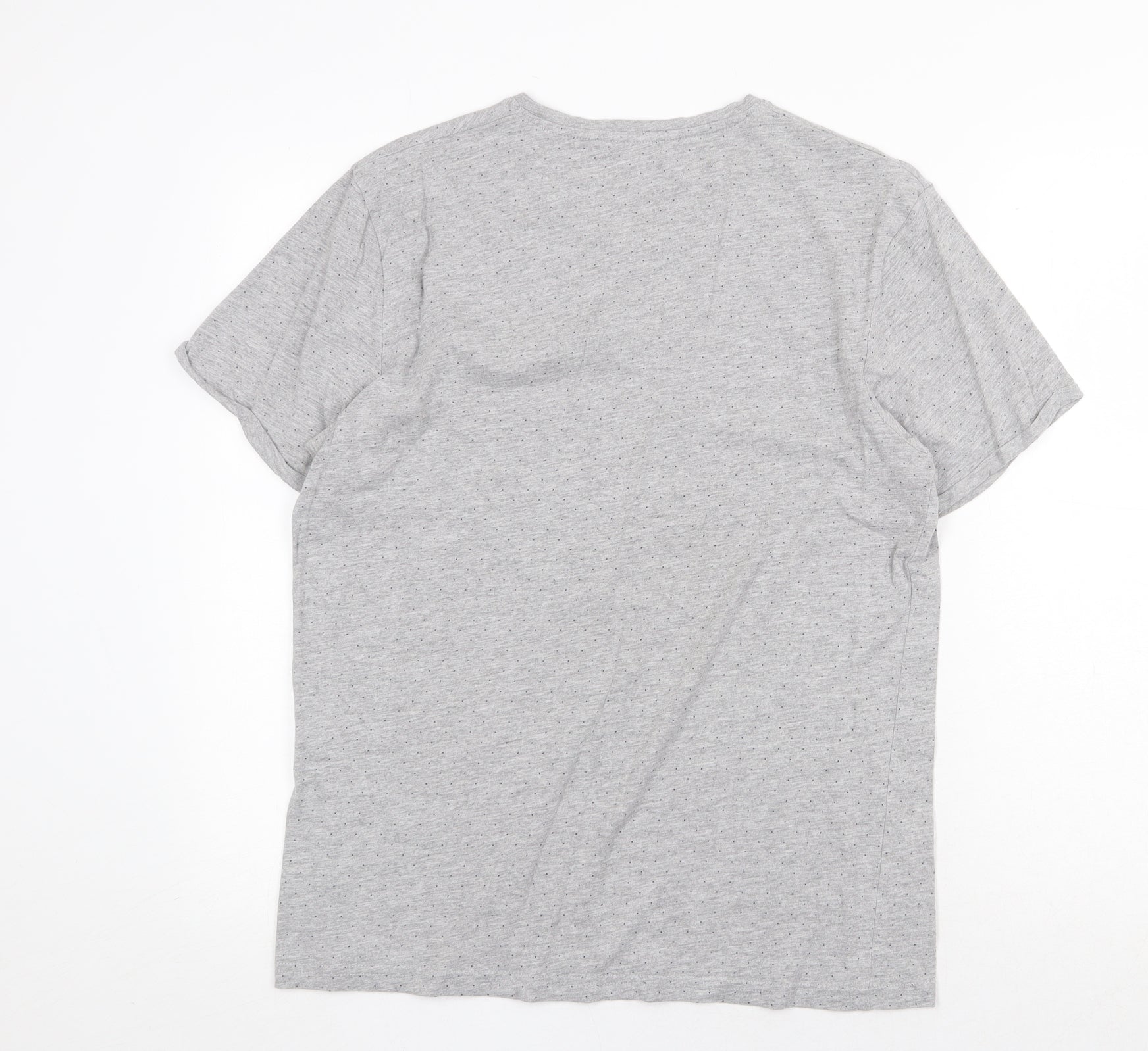 Mens Grey Polka Dot Cotton T-Shirt Size M Round Neck