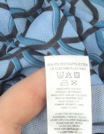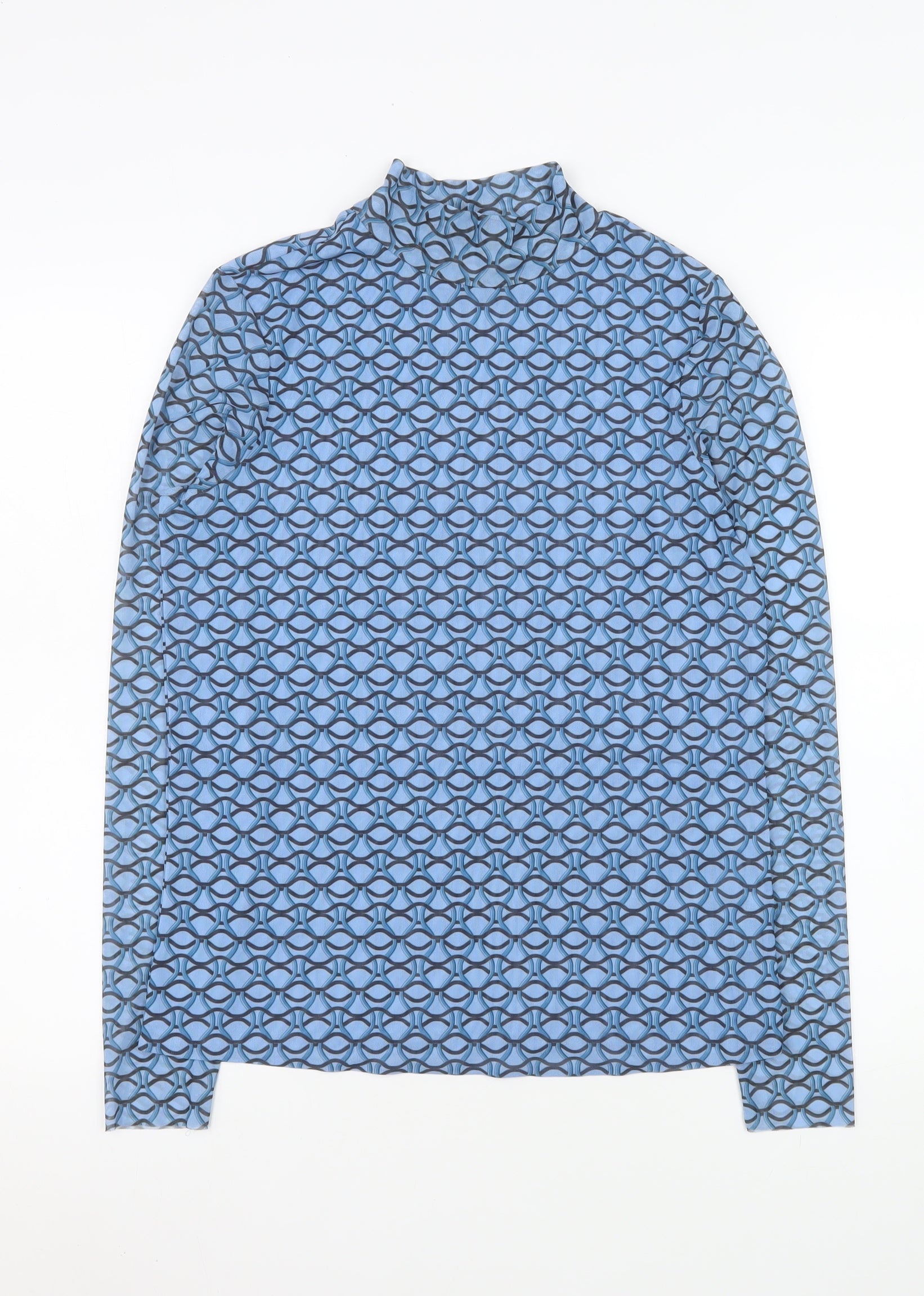 Women Blue Geometric Mock Neck Long Sleeve Mesh Top Size 14