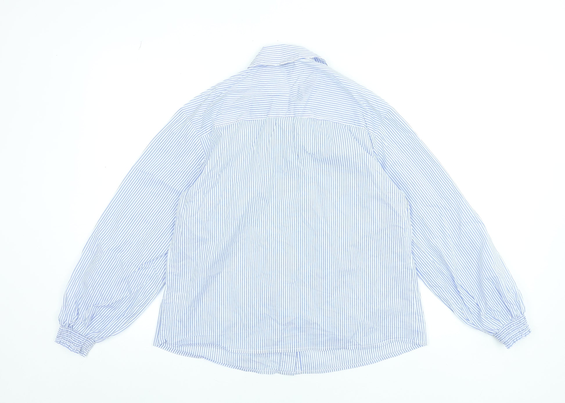 Women Blue Striped Cotton Blend Long Sleeve Blouse UK 10
