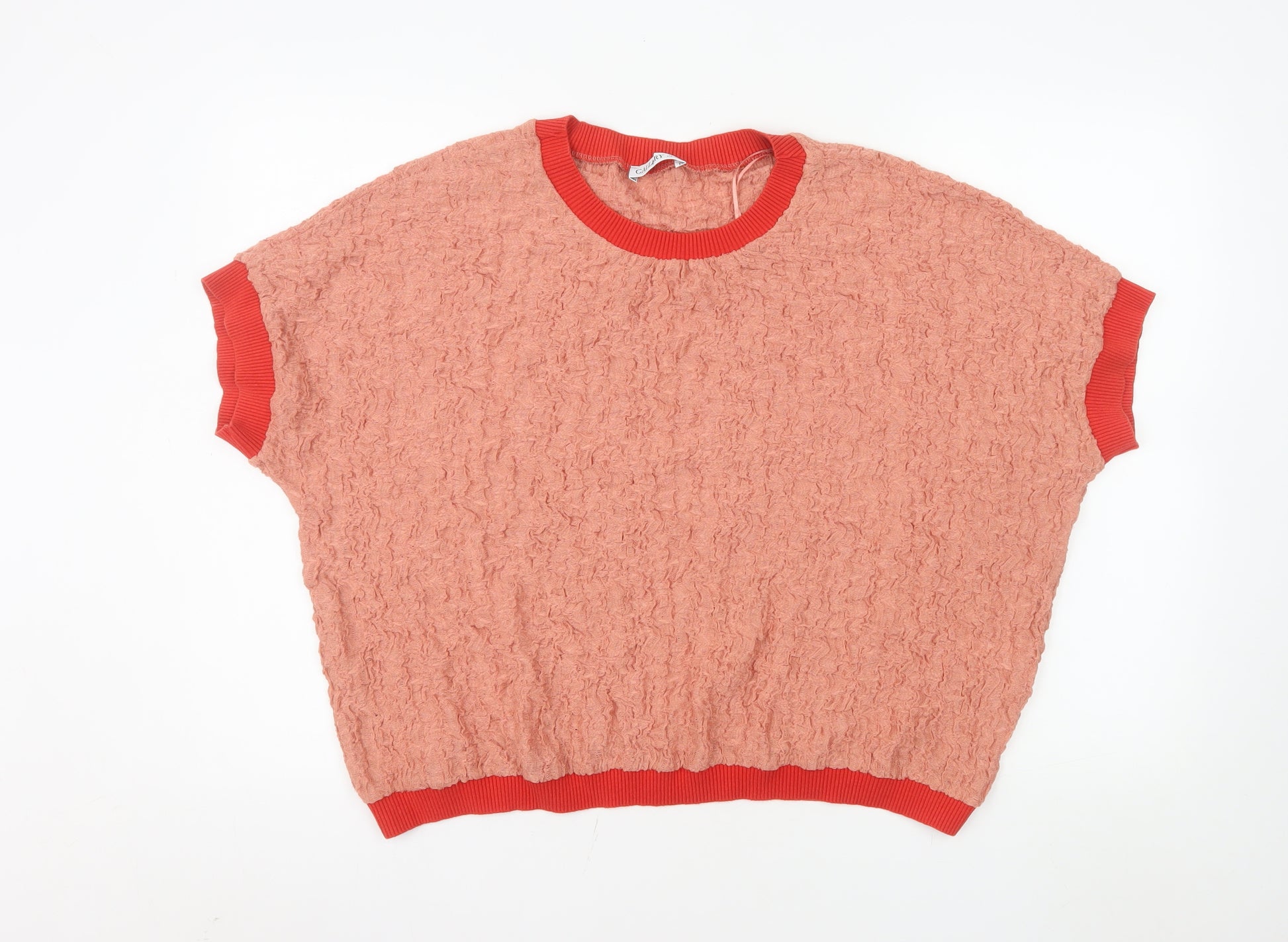Women Coral Textured Pullover Sweatshirt XL Relaxed Fit