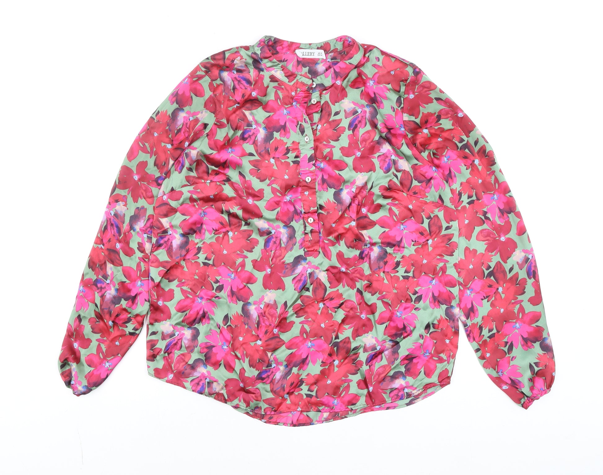 Brighten up your wardrobe with this stunning women’s floral blouse from Gallery, perfect for adding a cheerful touch to any outfit. Crafted from soft, lightweight 100% polyester, this blouse feels smooth against the skin and drapes beautifully, offering a comfortable and breathable wear ideal for warmer months. Its multicoloured floral print in vibrant shades of pink, red and purple with a light green base makes a bold yet elegant statement, ensuring you stand out in style this spring and summer. The blouse features a regular fit for easy movement and a flattering shape, with long sleeves that create a classic silhouette. The button fastening down the front adds a timeless finish while allowing you to adjust for comfort and style. Whether paired with tailored trousers for work or with jeans for a more relaxed weekend look, this versatile blouse transitions effortlessly across occasions. Designed for women who appreciate timeless patterns with a modern touch, this Gallery top makes an excellent addition to any smart-casual wardrobe. Machine washable for easy care, this blouse maintains its vivid colours wash after wash. In excellent condition with no visible flaws or damage, it offers both quality and affordability. Perfect for spring or summer wear, the lightweight and breathable fabric make it suitable for layering with a jacket or wearing on its own during warmer days. A great choice for workwear, casual outings, or even a lunch date, this blouse brings comfort, colour and confidence together. Refresh your wardrobe with this elegant and versatile Gallery floral blouse – stylish, comfortable and full of personality. A wardrobe staple for women who love effortless elegance.