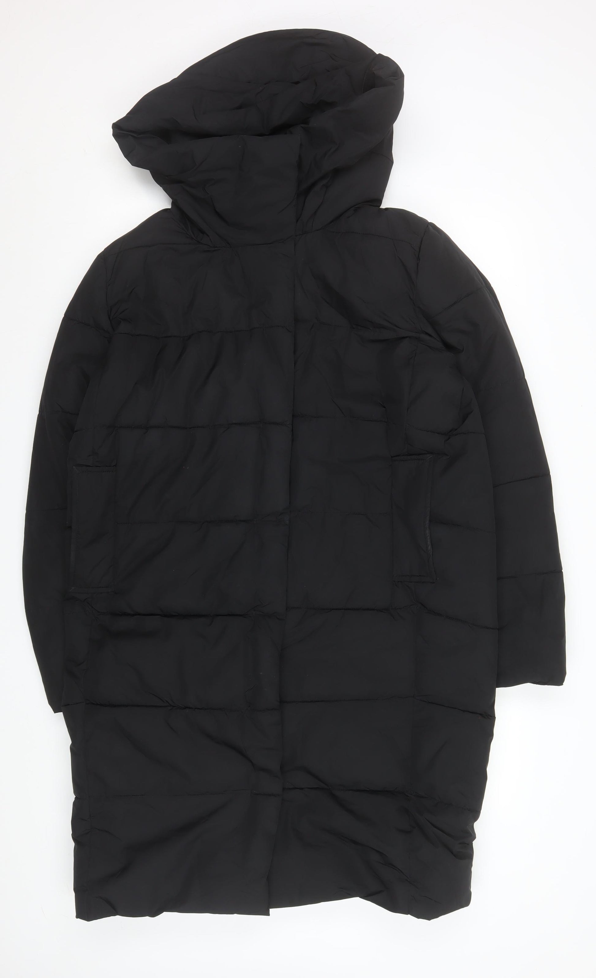 Womens Black Size 10 Long Puffer Coat Hooded Winter Jacket