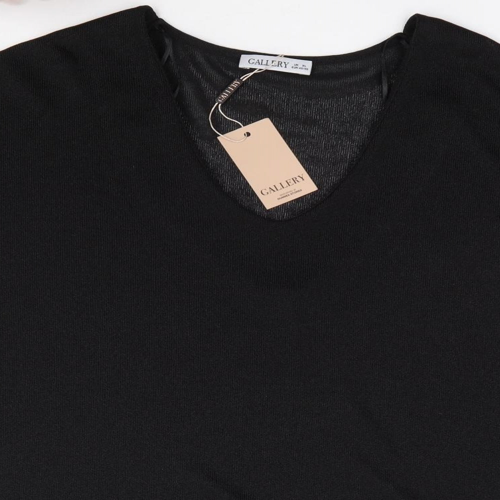 Womens Black V-Neck Polyester Pullover Jumper Size XL