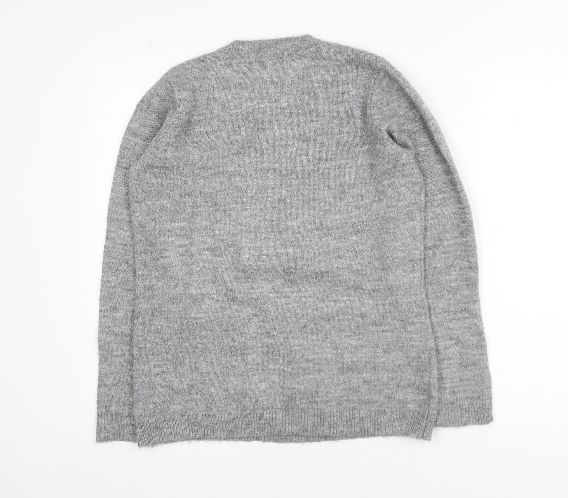 Add a touch of festive sparkle to your winter wardrobe with this cosy women's grey Christmas jumper from Gallery. Crafted in a soft and comfortable knit, this pullover combines warmth with subtle shimmer, making it perfect for casual holiday gatherings or simply brightening dull winter days. Made from a quality blend of acrylic, polyester, metallic fibres and a touch of elastane, it provides an easy stretch fit while retaining its shape and comfort. The Crew Neck design and long sleeves ensure a classic silhouette, while the front features sequinned detailing in the form of a Christmas tree and snowflakes with the French phrase 'La Nuit Étoilée', giving it a stylish seasonal flair. Designed for comfort and practicality, it’s lightweight and machine washable for easy care. This jumper has a tight-knit finish that helps trap warmth while maintaining a smooth, neat appearance. Ideal for layering over shirts or pairing with jeans, skirts or leggings for a relaxed yet polished look, it’s a versatile piece that transitions seamlessly from day to evening wear throughout the holiday season. Perfect for anyone seeking a festive yet tasteful jumper that can be worn year after year, this Gallery knit is durable, comfortable, and beautifully made. The lovely grey shade makes it easy to coordinate with your winter wardrobe staples. In excellent used condition, showing minimal signs of wear, it’s ready to bring charm and comfort to your festive celebrations. Celebrate the season with effortless elegance in this chic and playful jumper — ideal for Christmas parties, casual days out or cosy nights by the fire.