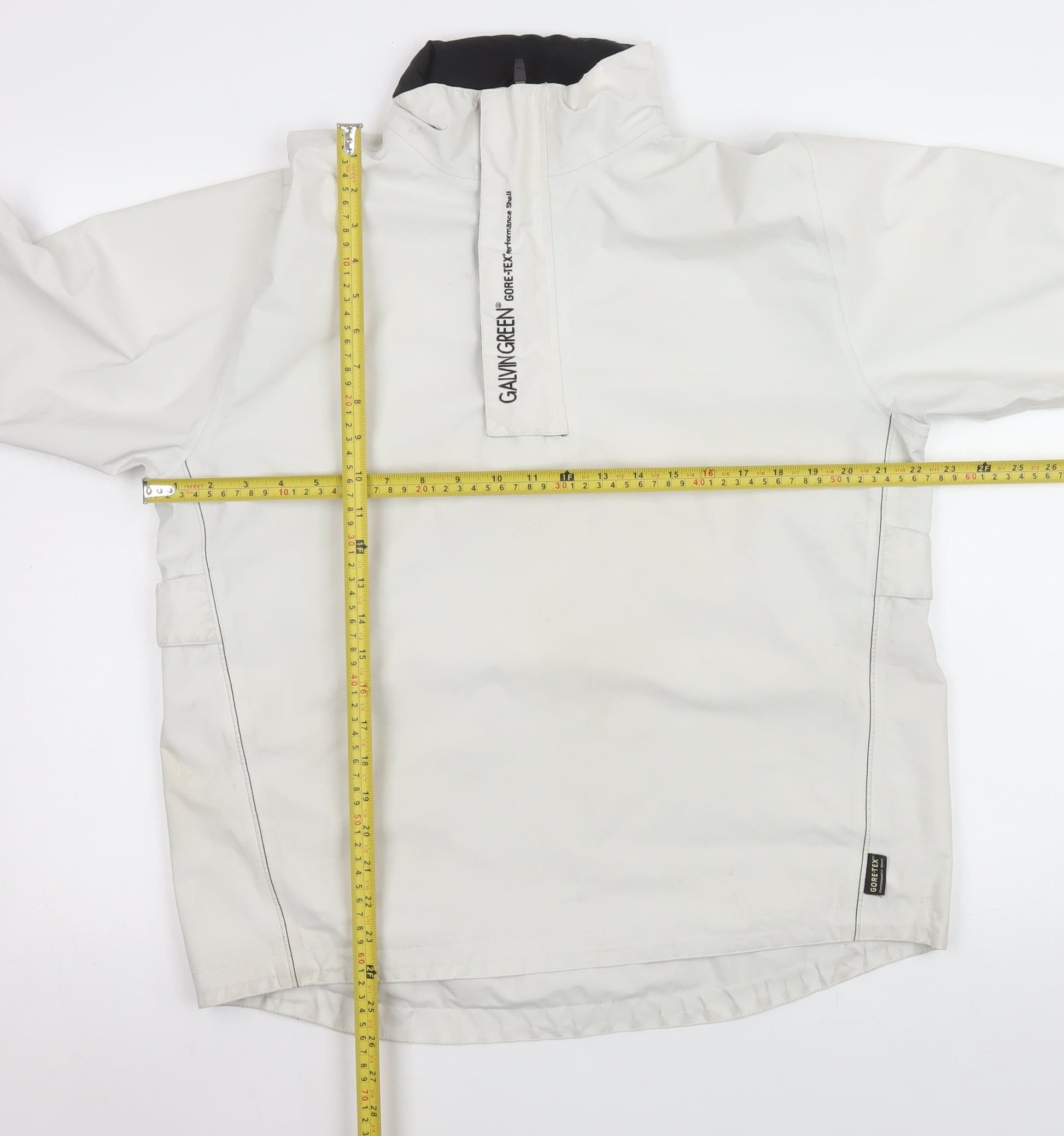 Stay dry and comfortable in unpredictable weather with this premium Galvin Green men's Gore-Tex windbreaker jacket in classic white. Designed for golfers and outdoor enthusiasts who demand performance and style, this jacket offers advanced protection against wind and rain without compromising breathability. Crafted from a durable outer shell of 71% polyester and 29% PTFE, it ensures a lightweight yet robust construction. The inner lining, made from soft 100% polyester, provides comfort and insulation, ideal for layering during colder rounds or outdoor activities. Featuring a quarter zip fastening, stand-up collar, and adjustable cuffs with secure Velcro straps, this jacket boasts practical detailing for adaptability in changing conditions. Its minimalist design, with subtle Galvin Green branding and sleek modern lines, complements any sporty wardrobe while maintaining an understated aesthetic. Engineered with Gore-Tex fabric technology, it guarantees complete waterproof and windproof protection while remaining breathable, ensuring you stay comfortable and dry through rain showers or breezy days. Whether you're on the golf course, out for a walk, or travelling, this versatile windbreaker delivers reliable weather resistance and functional style. This jacket falls under a ‘Regular’ fit and mid-length cut, offering freedom of movement without excess bulk, making it ideal for layering over your golf or casual attire. In excellent pre-owned condition with light wear visible but clean overall, it’s ready to elevate your outdoor apparel. A must-have for those who appreciate performance-driven clothing with timeless design, this Galvin Green Gore-Tex jacket is your dependable companion for an active lifestyle.