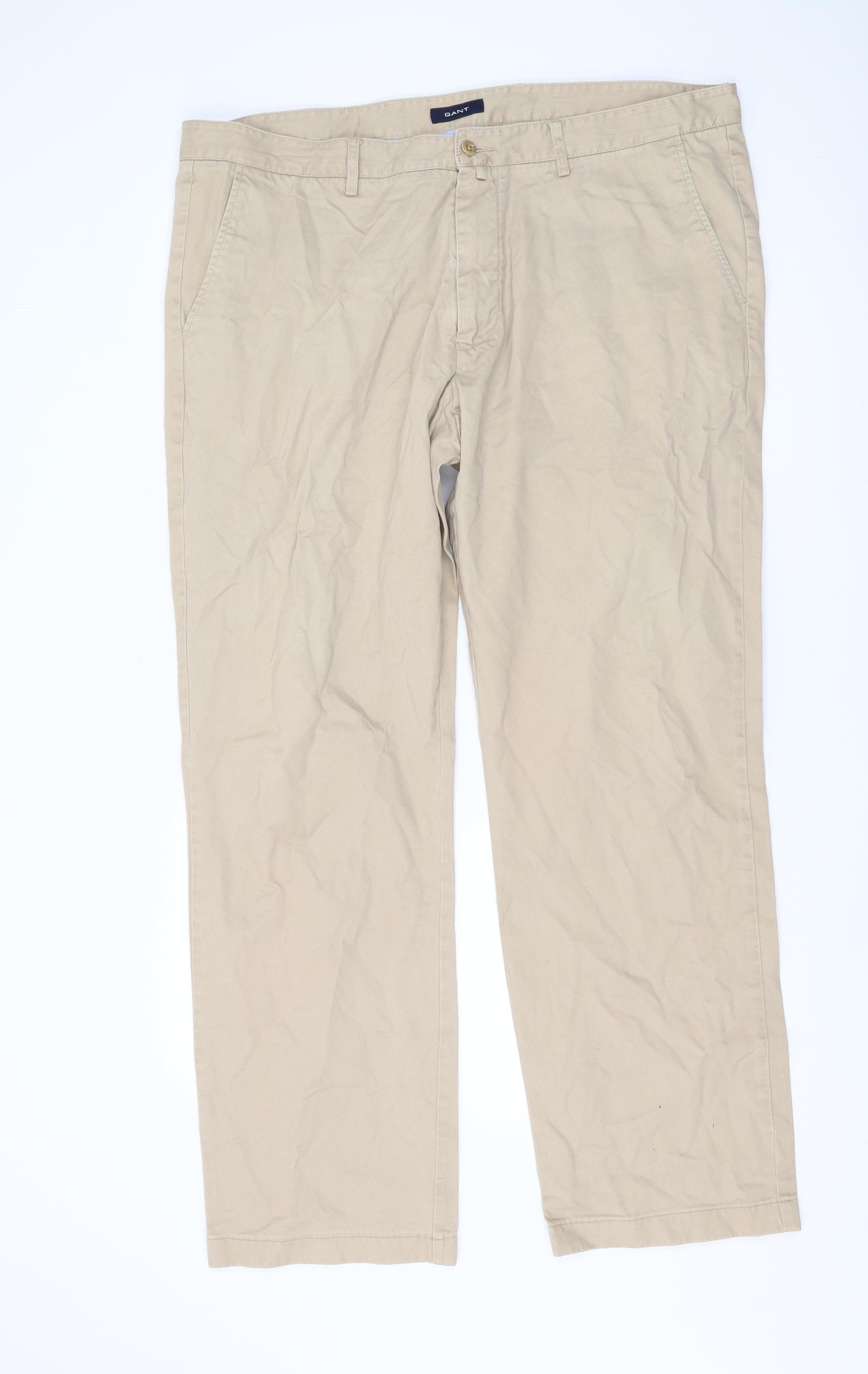 Elevate your wardrobe with these classic GANT men's chino trousers, ideal for casual outings or smart-casual occasions. Crafted from 100% cotton twill, these beige trousers promise breathability and comfort throughout the seasons. With a regular fit and straight leg style, they offer a timeless look that pairs seamlessly with any outfit. The flat front and mid-rise design provide a modern silhouette, while practical slash pockets add functionality to style. Designed for versatility, they're perfect for spring, summer, and autumn wear. Though gently worn with subtle signs of use, a quick pressing will restore them to their original crisp appearance. Embrace the sophisticated simplicity GANT is known for—perfect for the discerning gentleman who appreciates understated elegance. Machine washable for easy care, making these chinos a staple in any collection. A must-have for casual yet polished dressing.