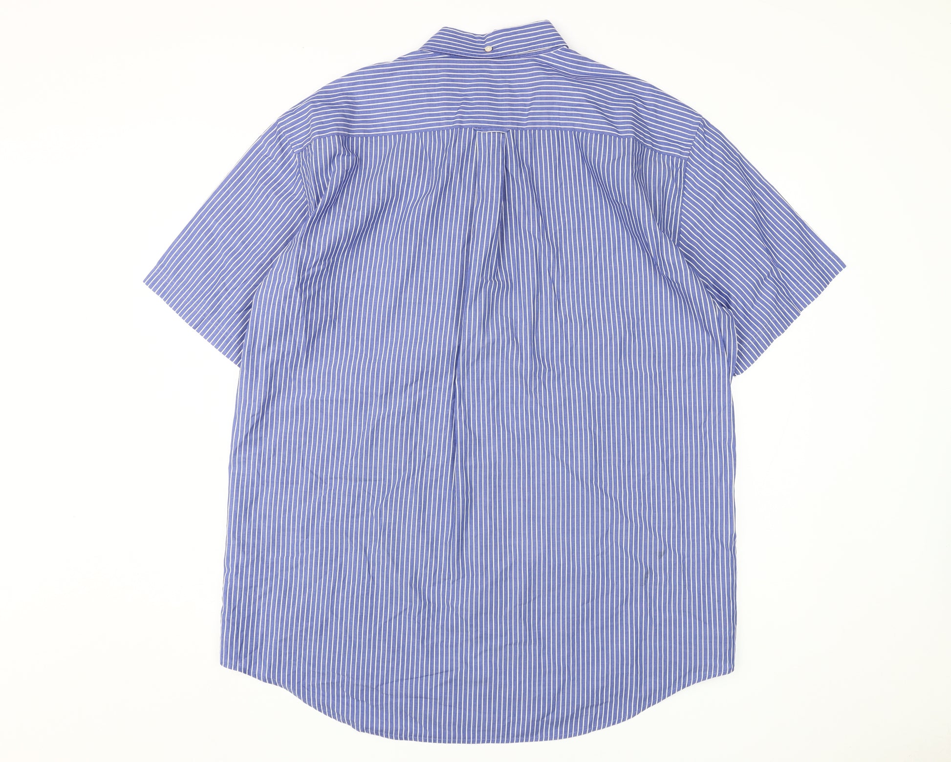 Elevate your casual wardrobe with this GANT men's striped shirt, crafted from 100% cotton for a soft and breathable feel. In a sophisticated blue shade, this button-up shirt features a classic regular fit, ideal for casual outings or relaxed office environments. The short sleeves and button-down collar offer a timeless design, while the button accents add a touch of detail. Perfect for the summer season, this shirt brings both comfort and style to your everyday look. Available in size XL, it's a versatile piece that can transition from day to evening with ease. Machine washable for effortless care, this GANT shirt is a practical addition to any wardrobe, offering a relaxed yet polished vibe. Despite minor wear and wrinkles, it retains its charm and provides a great value for its quality.