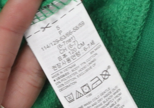 Step up your child's casual wardrobe with this classic GAP Boys Hoodie. Designed in a vibrant green shade, this full-zip hoodie is crafted primarily from comfortable cotton with a hint of polyester, ensuring durability and a soft touch against the skin. Perfect for a variety of casual outings, this hoodie caters to boys aged 6-7 years, making it a versatile addition to his closet. The hoodie boasts a convenient full zip, allowing for easy layering over t-shirts or under jackets. The iconic GAP logo accentuates the front, adding a touch of style while showcasing brand authenticity. This hoodie is equipped with a practical hood and kangaroo pockets, making it suitable for cooler days and ensuring your child stays warm and cosy. Its graphic print adds a playful appeal that pairs well with jeans or casual trousers. While the hoodie is in good condition, it displays some minor wear and a small hole, offering authenticity and character. Despite these minor imperfections, which are common for loved clothing items, it maintains its charm and overall appeal. Machine washable, this piece promises easy maintenance, making it ideal for an active lifestyle. Secure this staple today for a fraction of the original price, and let your child enjoy the comfort and fashion-forward aesthetic that GAP delivers.