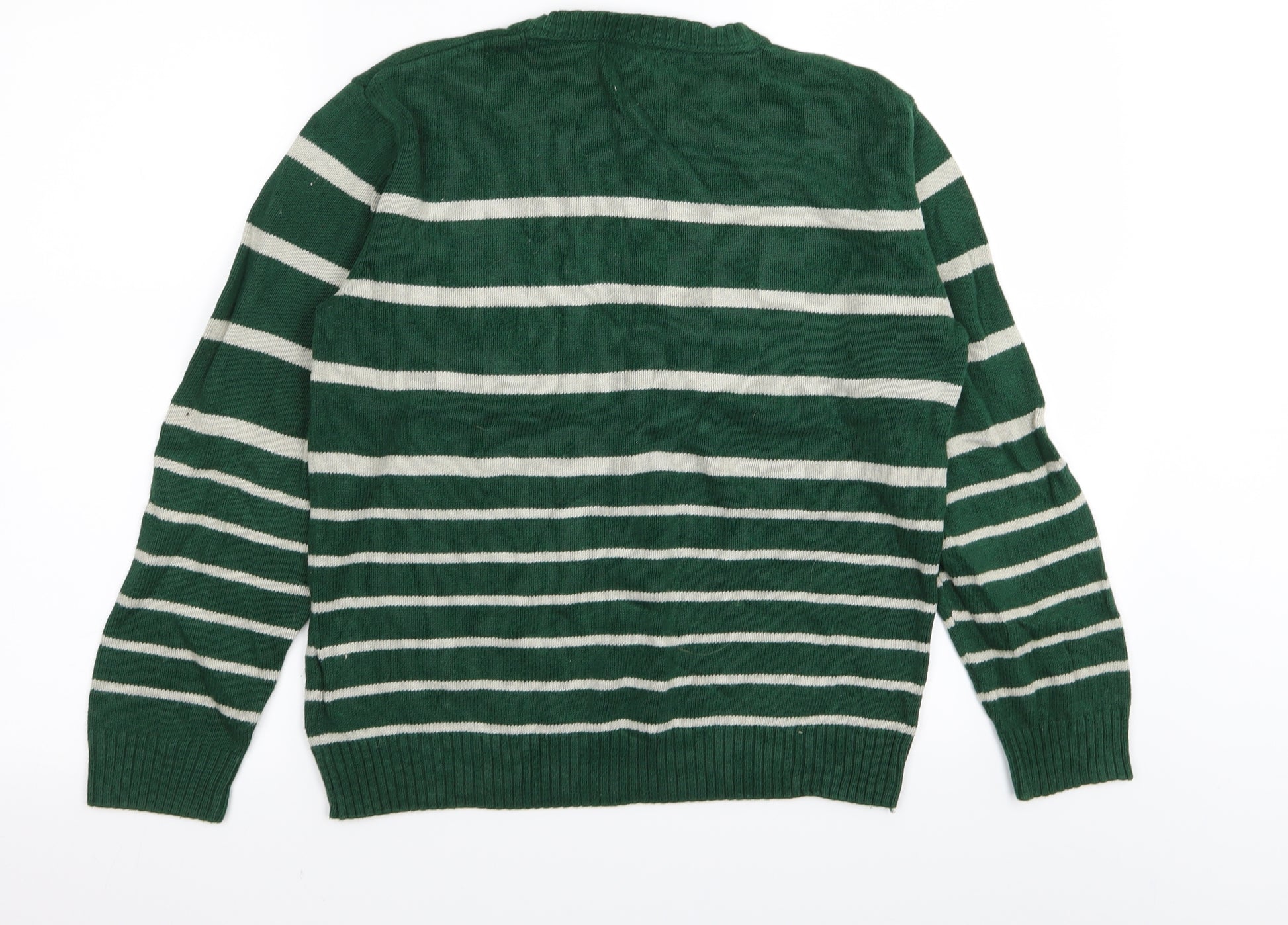 Boys Green Striped Pullover Jumper Size 12-13 Years