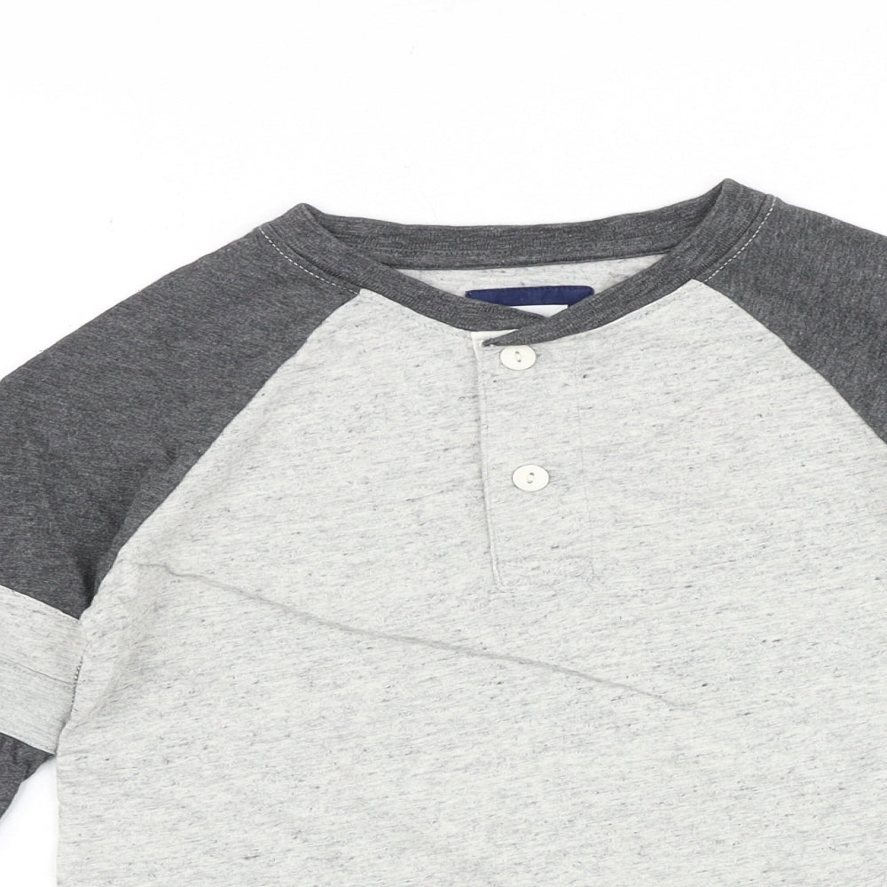 Boys Grey Colourblock 100% Cotton Basic Casual Size S Round Neck Button