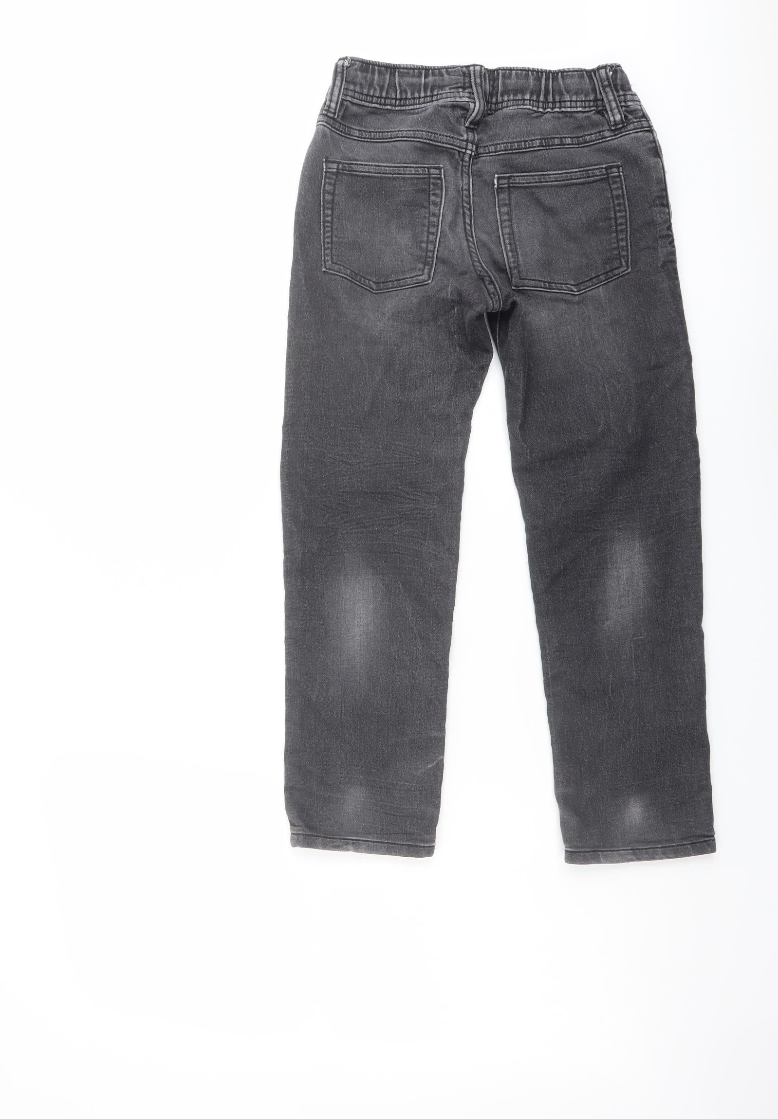 Boys Grey Cotton Straight Jeans Size 6-7 Years Regular Drawstring