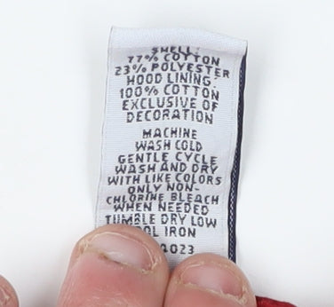 This GAP Boys Red Pullover Hoodie is perfect for keeping your young one stylish and comfortable. Crafted from a soft blend of cotton and polyester, it ensures a cozy and warm experience, ideal for autumn, spring, and winter seasons. The hoodie features a classic crew neckline and long sleeves, offering a regular fit that allows for easy movement and a relaxed feel.Adorned with the iconic GAP logo on the chest, this hoodie adds a touch of sporty style to any casual look. It’s designed with a hood to provide extra warmth when needed, while the pullover closure offers convenience and ease of wear.Whether for school, playdates, or lounging at home, this hoodie serves as a reliable choice for various casual occasions. It's machine washable, ensuring that maintaining the garment is hassle-free, making it a practical addition to your child's wardrobe.Designed in a vibrant red colour, this hoodie can easily be paired with jeans or joggers, making it versatile for multiple outfit combinations. Despite slight signs of wear, its condition remains excellent and ready for a new home! Grab this essential piece for your young one's collection today.
