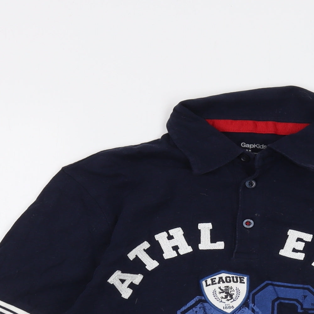 Girls Blue Cotton Basic Polo Size 10-11 Years Collared Button