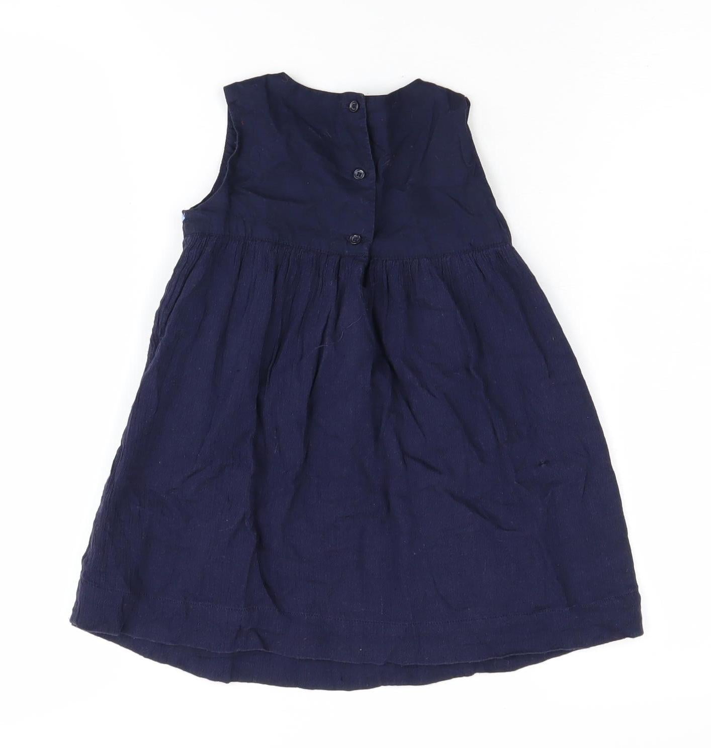 This charming girls' dress from Gap is an ideal addition to any wardrobe, offering both style and comfort for your little one. Crafted primarily from a blend of soft cotton and smooth rayon, the dress ensures a cosy feel that's gentle on the skin. The embroidered floral accents on a classic blue backdrop add a touch of elegance, making it perfect for various occasions. Its sleeveless design keeps it cool and breathable, while the button closure at the back facilitates easy dressing. Though the dress is devoid of its original sales tags, it remains in excellent condition without any noticeable wear, making it a great value find for discerning parents. Its machine washable fabric simplifies cleaning without sacrificing quality. Elevate your child's style with this versatile piece that can transition from playtime to a casual outing with ease. Pair it with adorable sandals or shoes to complete the look. Don't miss out on this delightful ensemble, perfect for making memorable moments.
