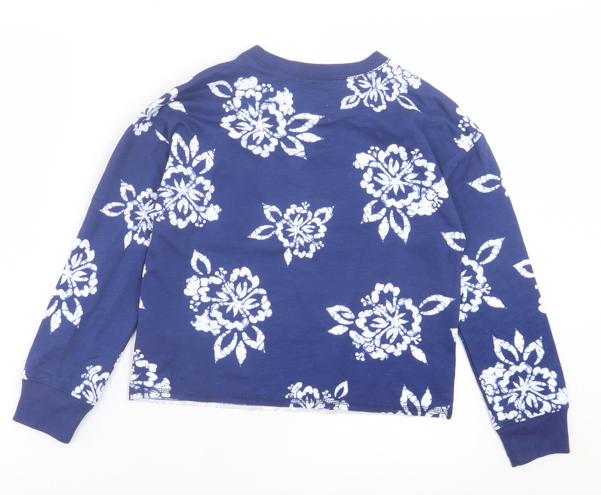 Girls Blue Floral Cotton Basic Casual Size 10 Years Crew Neck Pullover