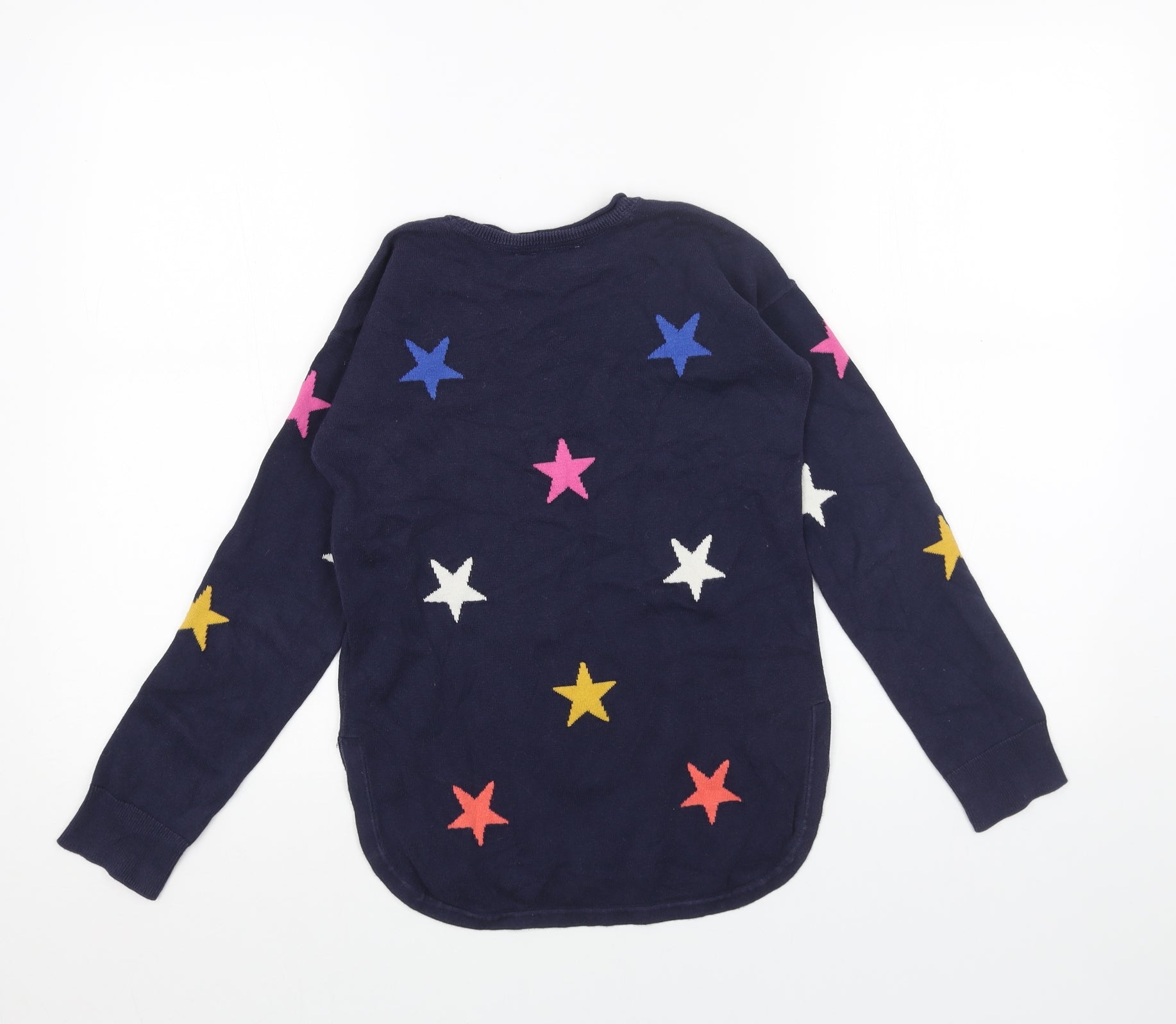 Girls Blue Round Neck Geometric Cotton Pullover Jumper Size 10 Years Pullover - Star Pattern