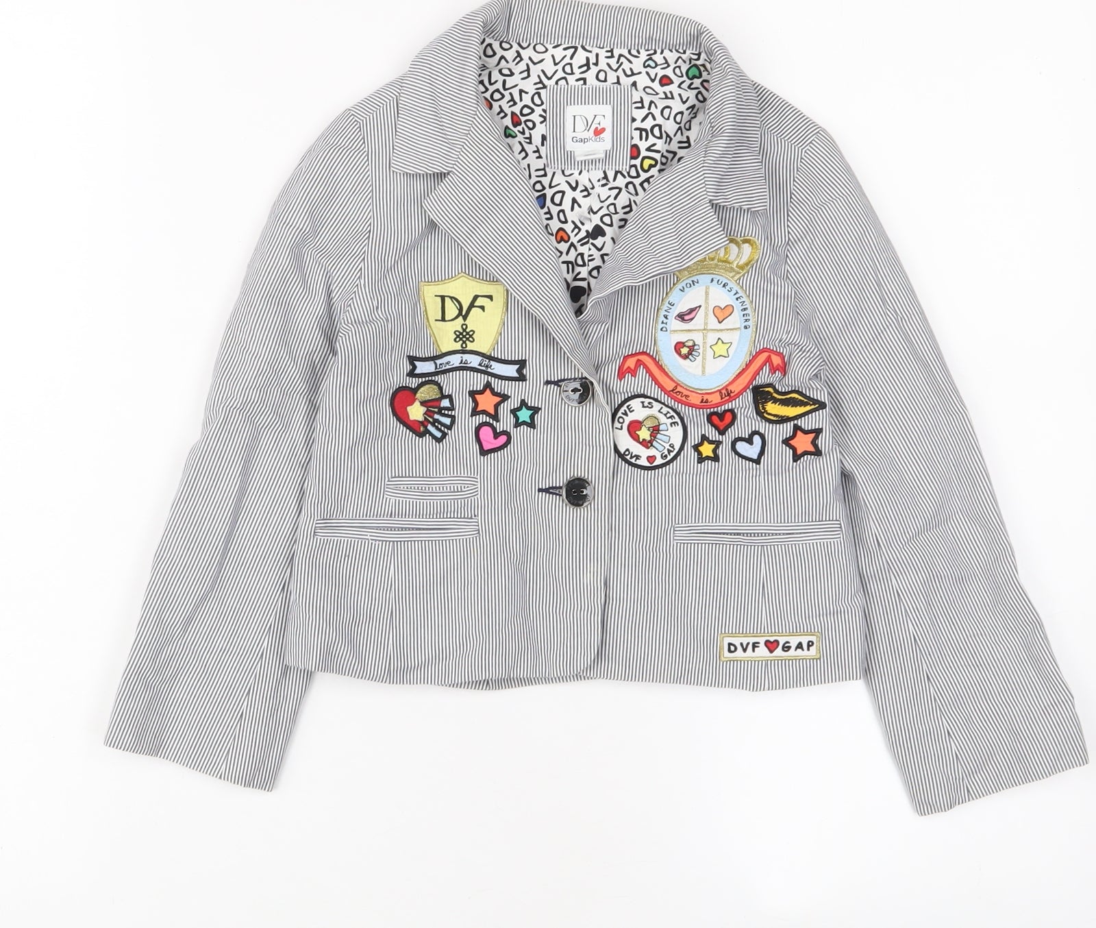 Girls Blue Striped Jacket Blazer Size 6-7 Years Button - Embroidered
