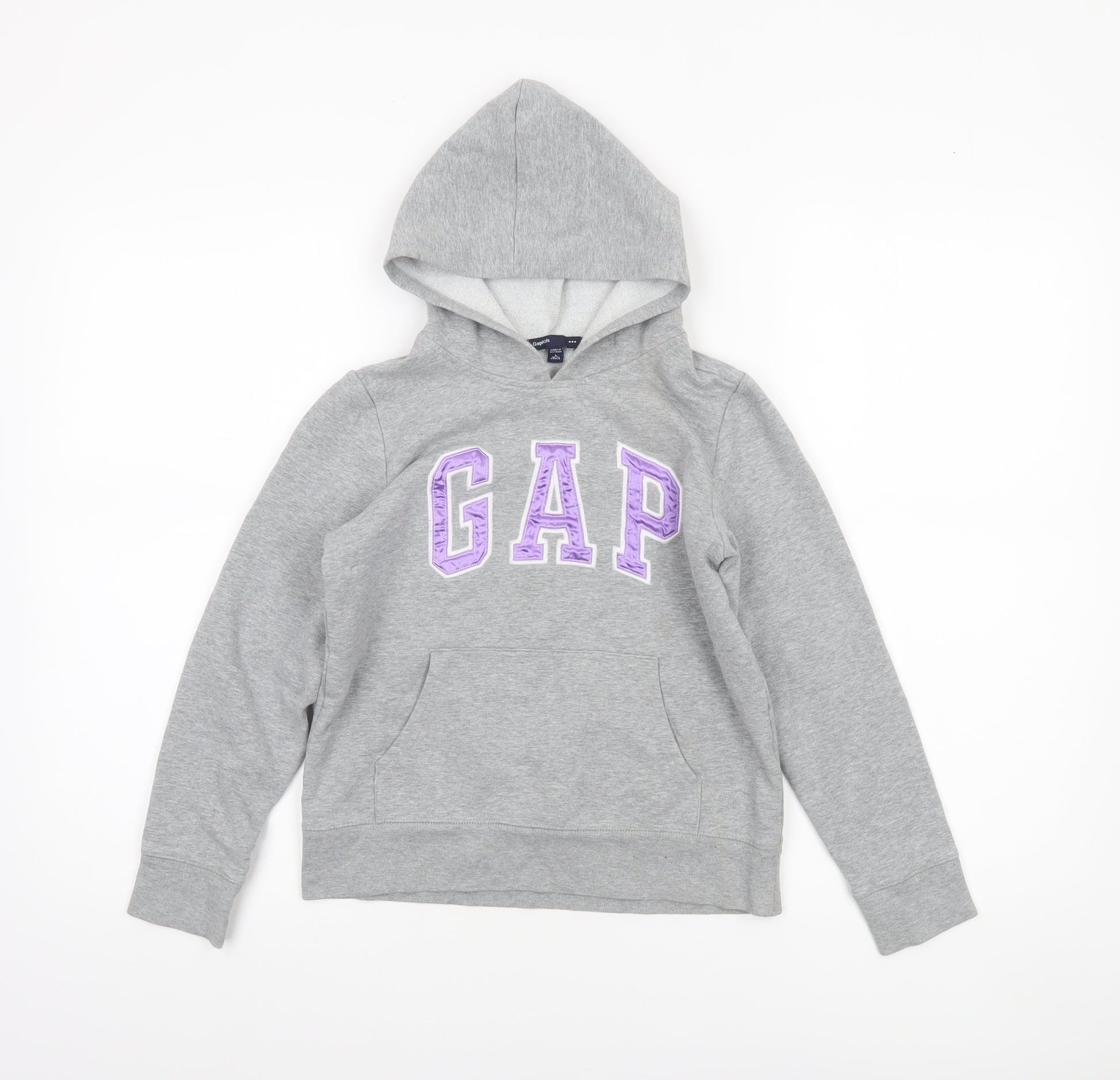 GAP Girls Grey Logo Pullover Hoodie L 10-11 Years Cotton Blend