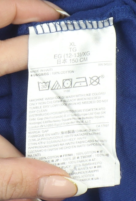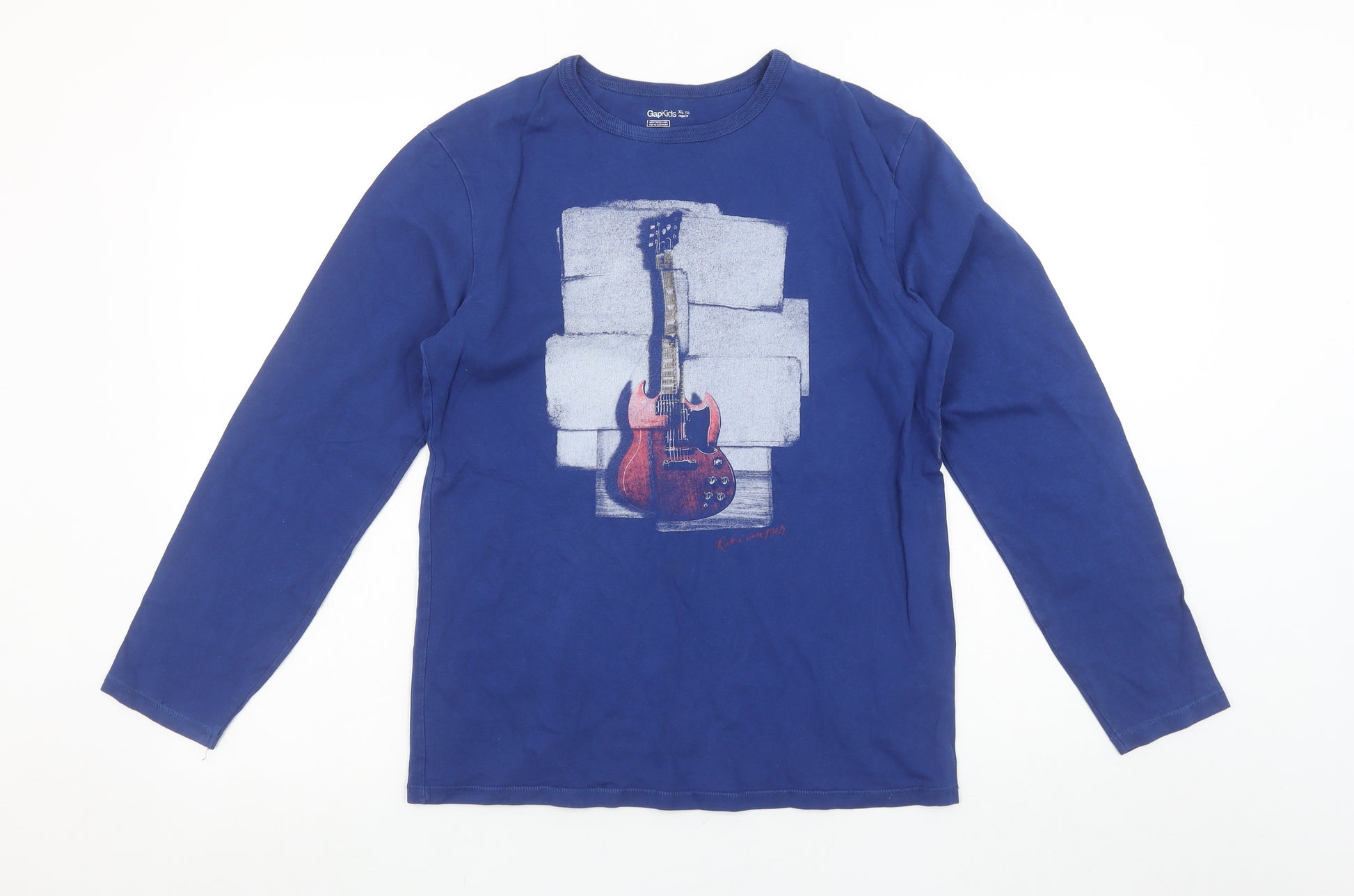 Let your young music lover express his passion with this stylish Gap Kids Boys Blue Long Sleeve Guitar Graphic Cotton T-Shirt in size 12-13 Years. Crafted from soft 100% cotton, this T-shirt offers the ideal blend of comfort and durability, making it perfect for everyday wear. The breathable cotton jersey fabric provides a lightweight, cosy feel, while its regular fit ensures ease of movement whether worn alone or layered under jackets in cooler months. Featuring a striking red electric guitar print on a mid-blue background, this shirt captures a fun rock-inspired vibe that kids adore. The long sleeves and crew neckline lend it a versatile, casual appeal that transitions seamlessly from school days to relaxed weekend outings. The pullover design adds simplicity, and the easy-care, machine-washable fabric means effortless maintenance for busy parents. Designed by Gap Kids, known for quality children’s essentials, this top retains a premium feel even after repeated washes. Perfect for autumn, winter, and spring seasons, it pairs easily with jeans, joggers, or denim shorts. In excellent used condition, it shows only minimal signs of wear with no holes, fraying, or stains noted. This comfortable and playful top is ideal for youngsters who love rock music, guitars, or simply bold, cool prints. Add this versatile blue long sleeve tee to your boy’s wardrobe and give him an effortlessly stylish everyday favourite that speaks to his creative personality. A must-have piece for a confident young trendsetter, all at amazing value.