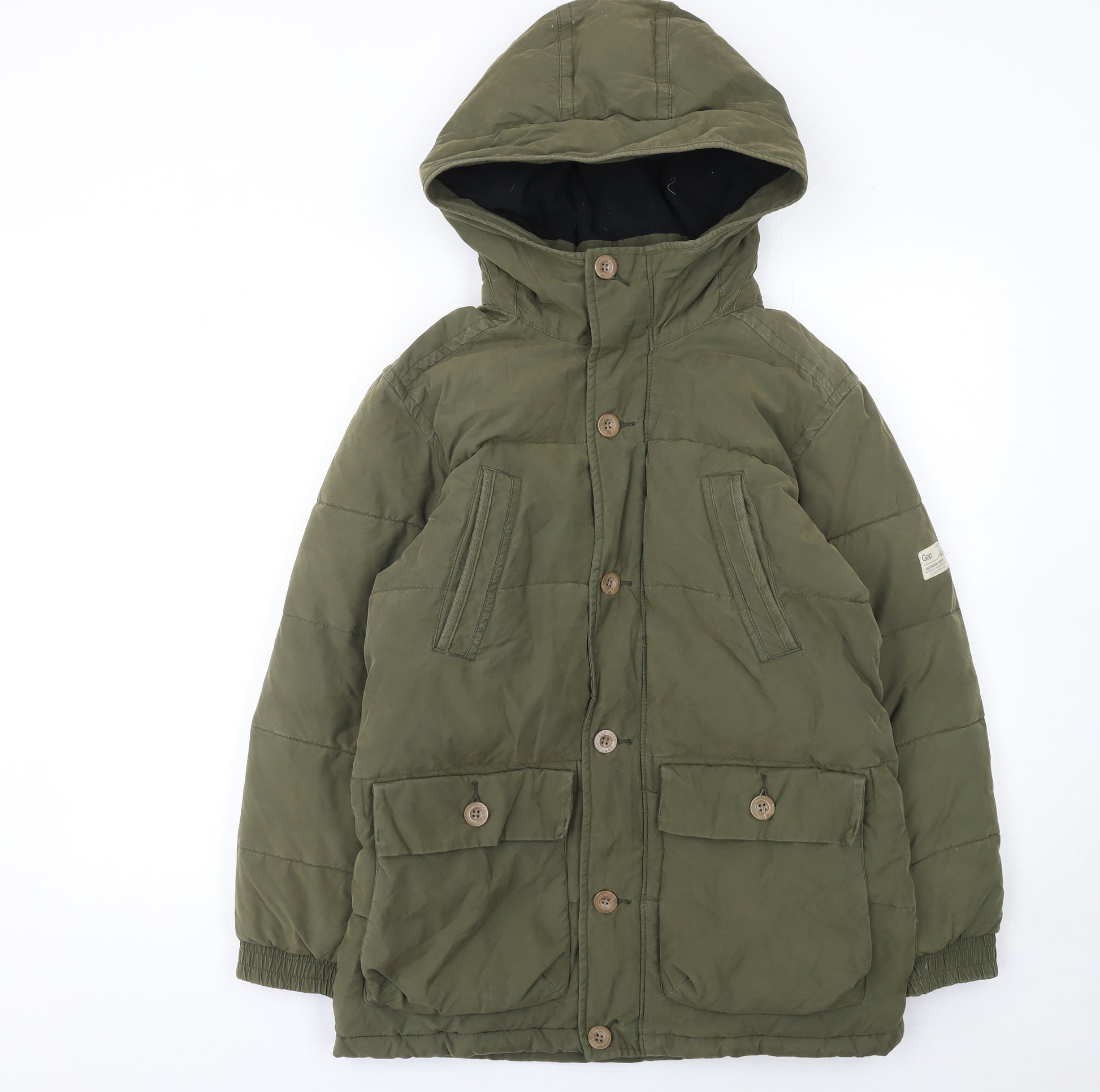 Kids Boys Green Hooded Puffer Jacket 12-13 Years Winter Coat