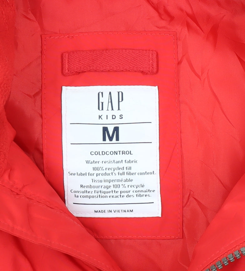Introducing the Gap Kids Boys Red Puffer Vest, a staple outerwear piece designed for the active young adventurer. Made from 100% durable polyester, this vest boasts a water-resistant outer shell, perfect for navigating the unpredictable winter weather. The vibrant red colour not only adds a pop of boldness to any outfit but also ensures high visibility during outdoor activities. Featuring a comfortable medium size, it provides a regular fit that allows for easy layering over sweaters or tops. The sleeveless design keeps it lightweight and ideal for on-the-go warmth without restricting movement. This puffer vest is insulated with synthetic material, offering superior warmth retention to keep your little one cosy during chilly days. It features a full-length zip closure for easy wear and removal. The design is accented by a sleek zipper, adding a touch of modern style. Fully machine washable, this vest is easy to care for, making it a practical choice for everyday wear. Whether for school, casual outings, or winter adventures, this Gap Kids vest combines functionality and style seamlessly. Grab this versatile and fashionable puffer vest today and watch your child enjoy both comfort and flair in their winter wardrobe.