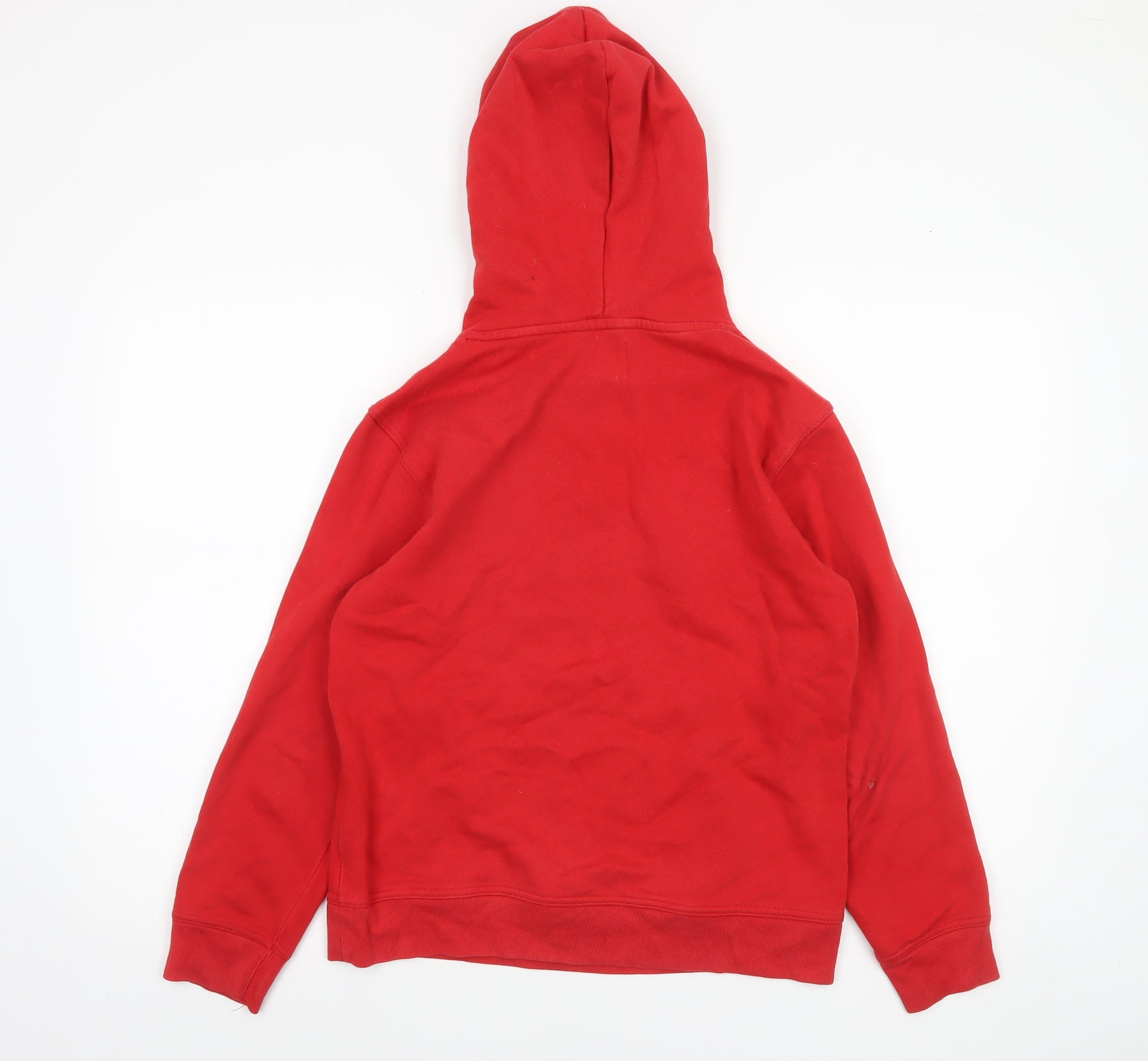 Keep your youngster warm and stylish with this classic GAP Kids pullover hoodie in vibrant red. Designed for boys aged 12–13 years, this comfortable hoodie is ideal for everyday wear, playing outdoors, or layering during cooler days. The soft fleece fabric, made from a blend of 77% cotton and 23% polyester, ensures cosy warmth while allowing breathability. The large 'GAP' logo across the chest adds that signature collegiate look loved by kids and parents alike. With a practical kangaroo pocket at the front and a double-layered hood, this hoodie combines comfort and function perfectly. Its pullover style makes it easy to throw on before heading out, and the long sleeves with ribbed cuffs keep warmth in during chilly moments. Ideal for school, weekend adventures, or lounging at home, this hoodie pairs well with jeans or joggers for a relaxed everyday outfit. Machine washable and crafted for durability, it’s built to withstand typical wear from active children. Despite being pre-owned, it remains in excellent condition with no stains or visible damage. Perfect for parents looking for quality clothing that offers reliable comfort, this red GAP hoodie delivers timeless style and practicality. Give your child’s wardrobe a sporty and casual update with this dependable, easy-care hoodie — a perfect blend of classic design and everyday comfort.