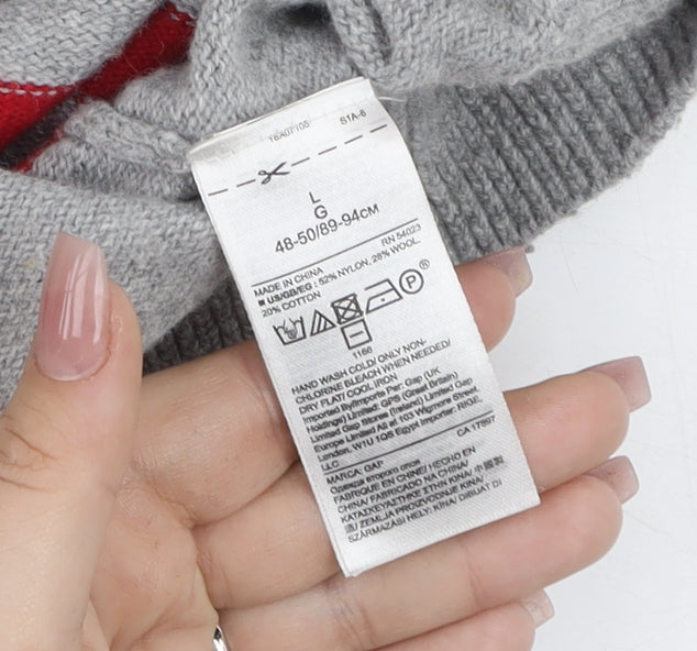 GAP Men’s Grey Striped Wool Blend Crew Neck Jumper Size L
