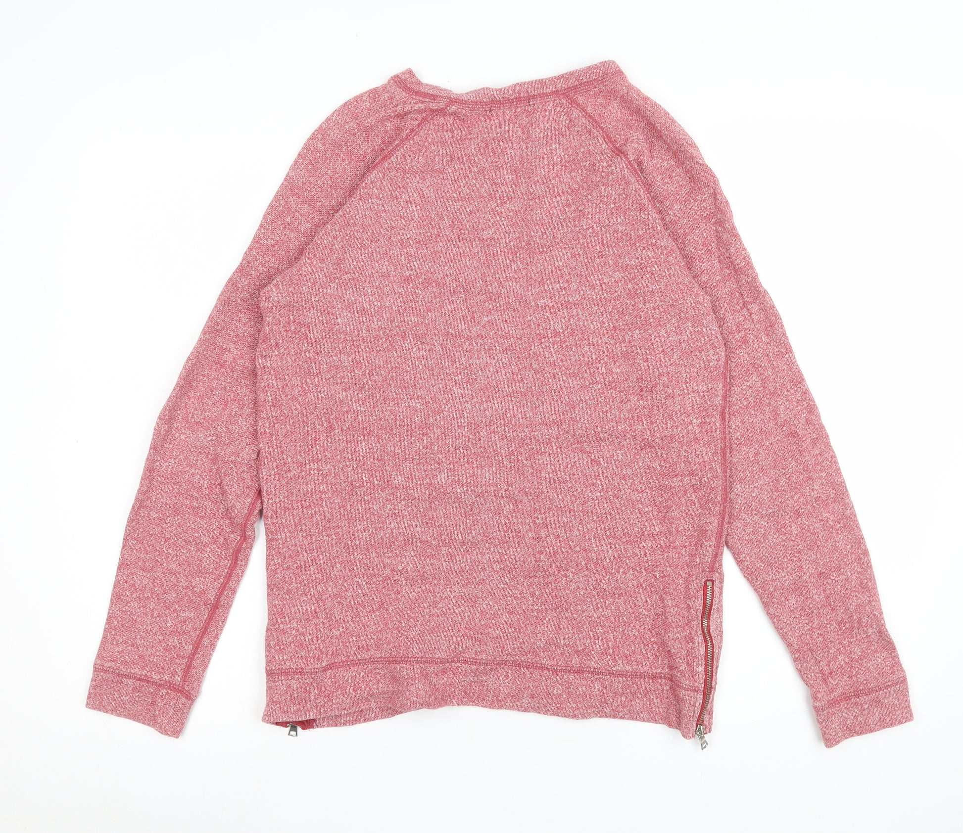 This men’s red crew neck sweatshirt from GAP is a stylish and comfortable choice for everyday wear. Crafted from a soft knit fabric made of 97% cotton and 3% elastane, it offers a gentle stretch for ease of movement while maintaining shape and durability. The sweatshirt features a pull-on design with subtle zip accents on both sides at the hem, adding a hint of contemporary style while also allowing for a more adjustable fit. Designed in a versatile red melange tone, this piece is ideal for layering during the cooler months or wearing on its own for a relaxed look. Its long sleeves and ribbed cuffs provide lasting comfort and warmth, while the lightweight knit construction ensures breathability—perfect for spring, autumn, or mild winter days. With its casual yet polished design, it easily pairs with jeans, joggers, or chinos, making it a timeless addition to any wardrobe. The regular fit ensures a flattering silhouette suitable for men who value comfort and classic appeal. This sweatshirt is machine washable, practical for everyday use, and great for both home and outdoor wear. Although pre-owned, the condition is excellent, showing minimal signs of wear with the fabric retaining its soft texture and colour. Ideal for those seeking quality and comfort from a trusted brand, this GAP sweatshirt embodies effortless style and versatility. A perfect choice for active days, casual outings, or simply lounging in comfort, it delivers reliable warmth, ease, and style with every wear.
