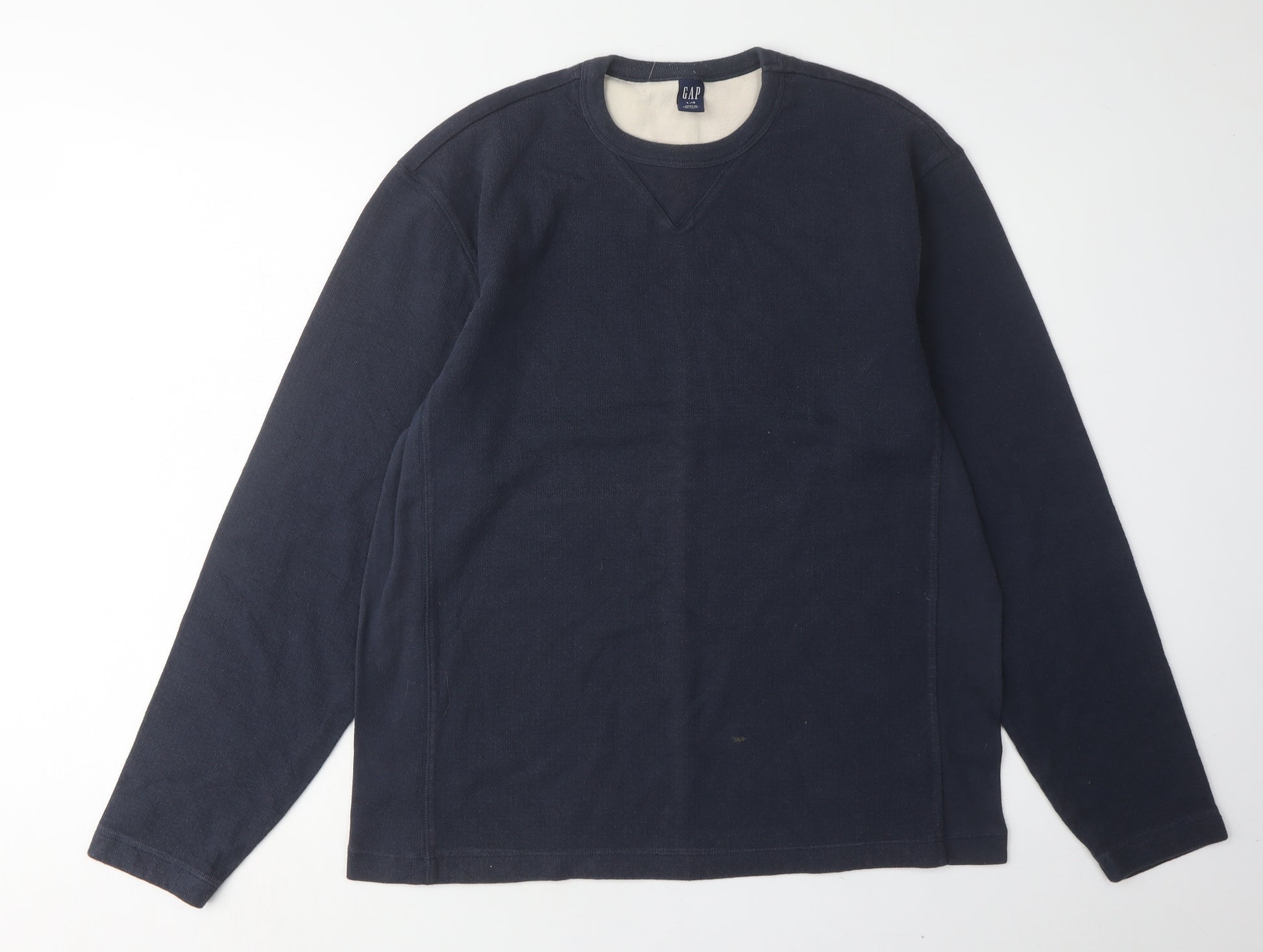 Elevate your casual wardrobe with this GAP Men's Blue Crew Neck Sweatshirt in Size L. Crafted for comfort and style, this sweatshirt offers a soft and durable blend of 65% polyester and 35% cotton, ensuring a snug fit and long-lasting wear. Its classic crew neck design is complemented by long sleeves, making it a versatile piece for layering or standalone wear. The rich blue colour adds a touch of sophistication, perfect for any casual outing or relaxed day. Despite its minimal wear, a minor stain on the front adds character without compromising its overall appeal. Ideal for everyday activities, this sweatshirt is a staple for any season. Grab it today and enjoy an effortless blend of fashion and comfort at an unbeatable price.