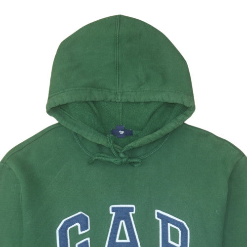 Add a classic piece of casual comfort to your wardrobe with this GAP Men's Green Pullover Hoodie in size Large. Designed for both warmth and style, this hoodie is made from a soft fleece blend of cotton and polyester, ensuring comfort and durability through daily wear. The rich green colour pairs well with denim or joggers, perfect for autumn and winter layering. Featuring a bold GAP logo across the chest, this instantly recognisable design showcases collegiate-inspired flair. The pullover style with drawstring hood gives it a timeless sporty look, while the front kangaroo pocket adds practicality and warmth for your hands. The ribbed cuffs and hem provide a snug fit that helps retain heat during cooler weather. Crafted for a regular fit, it's ideal for casual days out, lounging at home, or on the go. The soft inner fleece lining makes it particularly cosy for chilly conditions. The hoodie’s versatile style makes it a unisex staple, though primarily designed in a classic men’s cut. As a pre-owned item in excellent condition, this sweatshirt shows only minimal signs of wear and maintains strong colour and structure throughout. It’s machine washable for easy care and convenience. With clean stitching and high-quality fabric typical of GAP, this hoodie offers long-lasting wear and reliable comfort. Whether you wear it with jeans, sportswear, or shorts, this piece delivers an effortlessly relaxed style that suits any casual occasion. Perfect for anyone seeking a dependable, branded pullover, this GAP green hoodie is a wardrobe essential offering both comfort and contemporary appeal, great value for anyone who loves practical, everyday fashion with a touch of iconic branding.