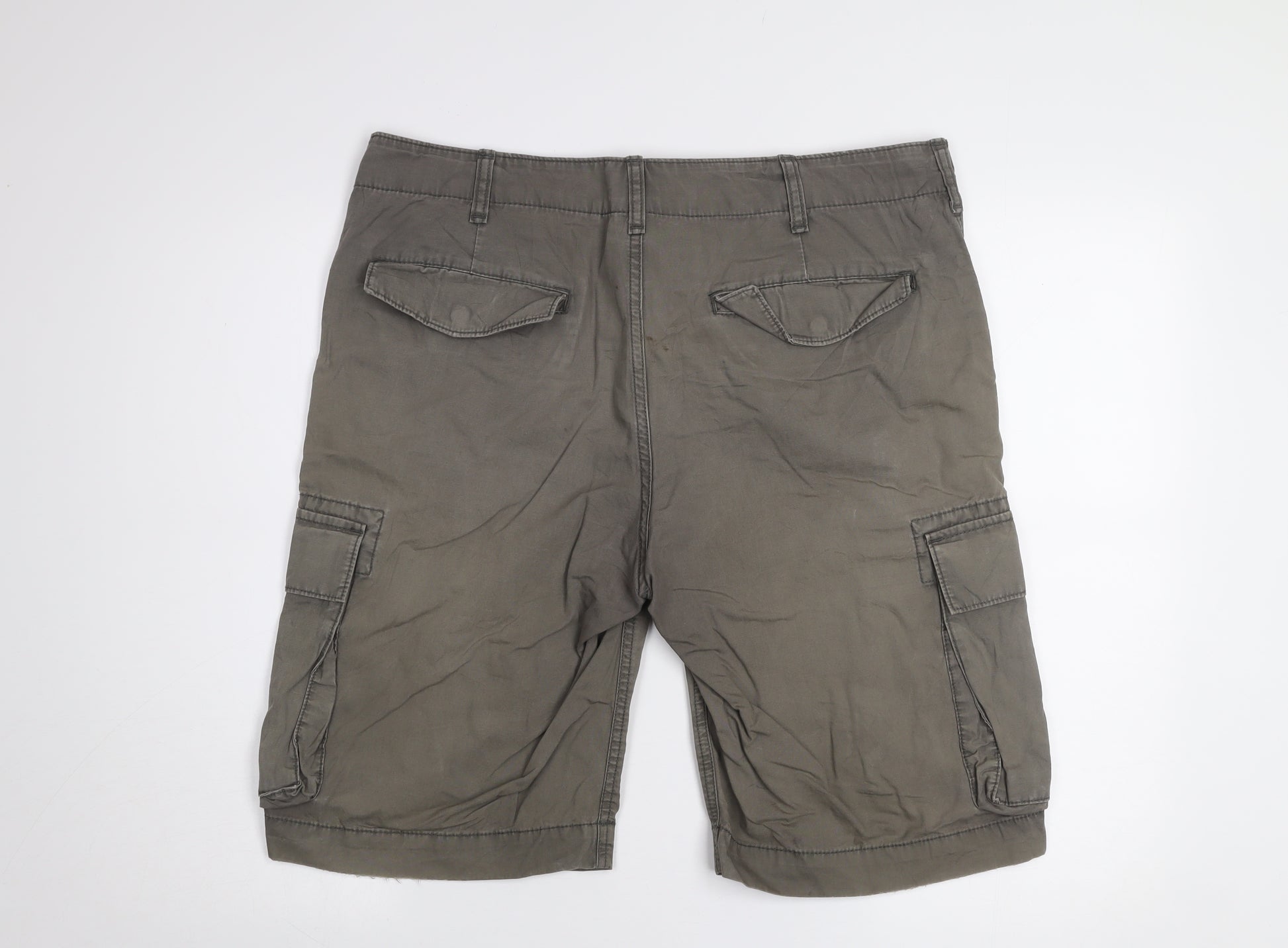 Men's Grey Cargo Shorts Size 34 Regular Cotton Casual