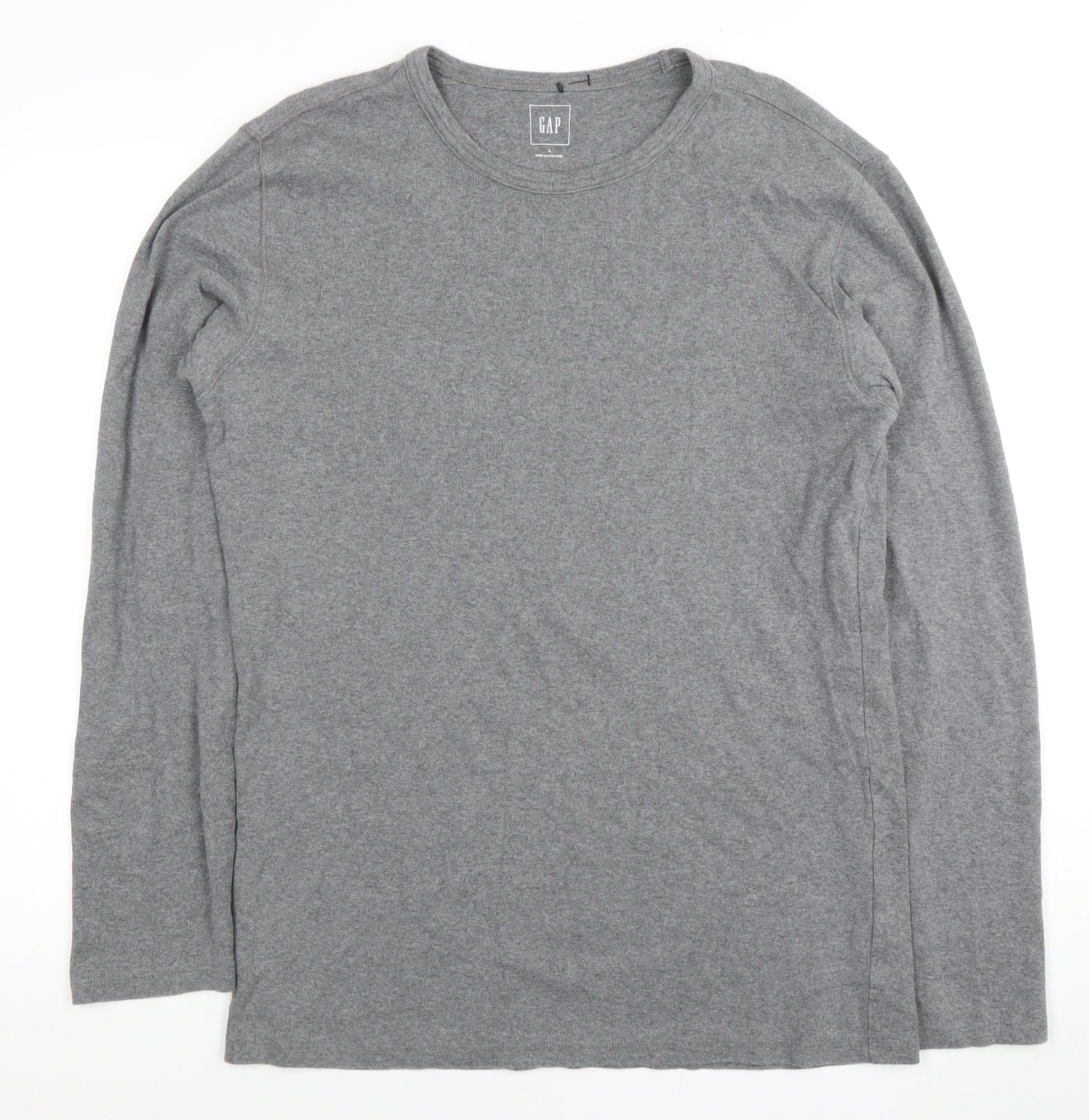 Explore the essence of understated style with this GAP menswear essential. This Long Sleeve Crew Neck T-Shirt, crafted from 100% soft cotton, offers unbeatable comfort and breathability. In a versatile shade of grey, the solid pattern makes it a seamless fit for any wardrobe. Whether it's for layering purposes or as a standalone piece, its regular fit ensures ease of movement for any casual occasion. Dive into a world of comfort and style with this must-have GAP piece. Perfect for transitioning through seasons while maintaining a modern, sleek look.