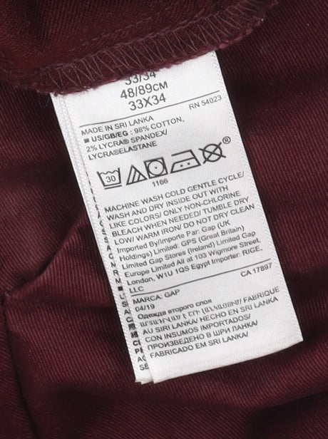 Elevate your everyday style with these classic red chino trousers from Gap. Designed for the modern man, these trousers combine comfort and versatility, making them perfect for both casual outings and workwear. Crafted from a premium blend of cotton and elastane, these trousers offer a comfortable fit with just the right amount of stretch. The regular fit and straight leg style ensure a timeless silhouette that complements any look. The mid-rise design provides comfort and style, making these trousers a reliable choice for spring and autumn wear. With practical features like slash pockets and button accents, these trousers are both functional and stylish. The machine washable fabric makes them easy to care for, saving you time and effort. These chinos are presented in a rich red hue, providing a pop of colour to your wardrobe. Their clean, flat front design and lack of pattern allow for easy pairing with a variety of shirts and jackets, enabling you to create a range of looks effortlessly. Light wear is visible, but these trousers remain in excellent condition, promising durability and long-lasting wear. Priced attractively, they offer great value for those seeking quality and style. Don't miss out on the opportunity to enhance your collection with these Gap chinos, suitable for both work and casual occasions.
