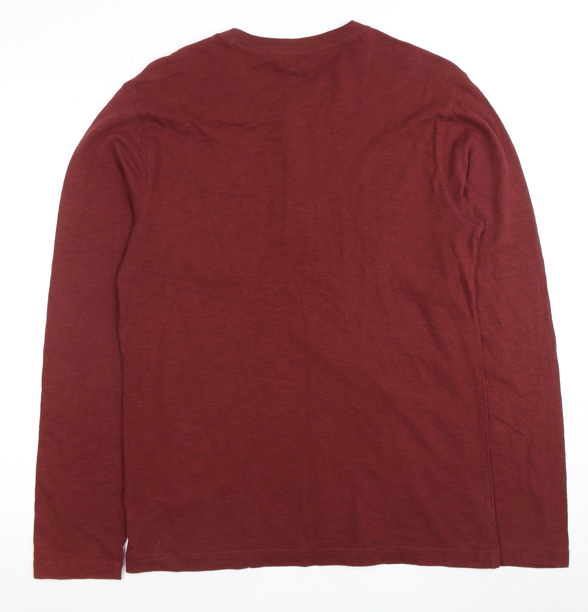 Explore the versatile style of this Gap Men's Red Henley Long Sleeve T-Shirt, perfect for adding a touch of classic yet modern flair to your wardrobe. This essential piece, created for men, fits splendidly in both casual and semi-casual settings. Crafted from 100% cotton, it promises a soft texture and breathability, making it an ideal choice for autumn and winter seasons. The rich red colour adds a bold yet relaxed vibe to your ensemble, ensuring you stand out while feeling cosy. The Henley neckline with button detailing adds a classic touch, seamlessly blending everyday comfort with a polished look. With long sleeves, this T-shirt provides enough coverage for cooler temperatures while maintaining a lightweight feel that is perfect for layering. Manufactured in the 2020s, it is machine washable, allowing for easy care and maintenance. Although gently worn, it remains in excellent condition with no visible signs of damage, ensuring longevity in your collection. Perfect for days out or enjoying a relaxed evening indoors, its regular size and solid pattern enhance both fit and appearance, making it a staple for any style-savvy individual seeking both comfort and flair in their attire.