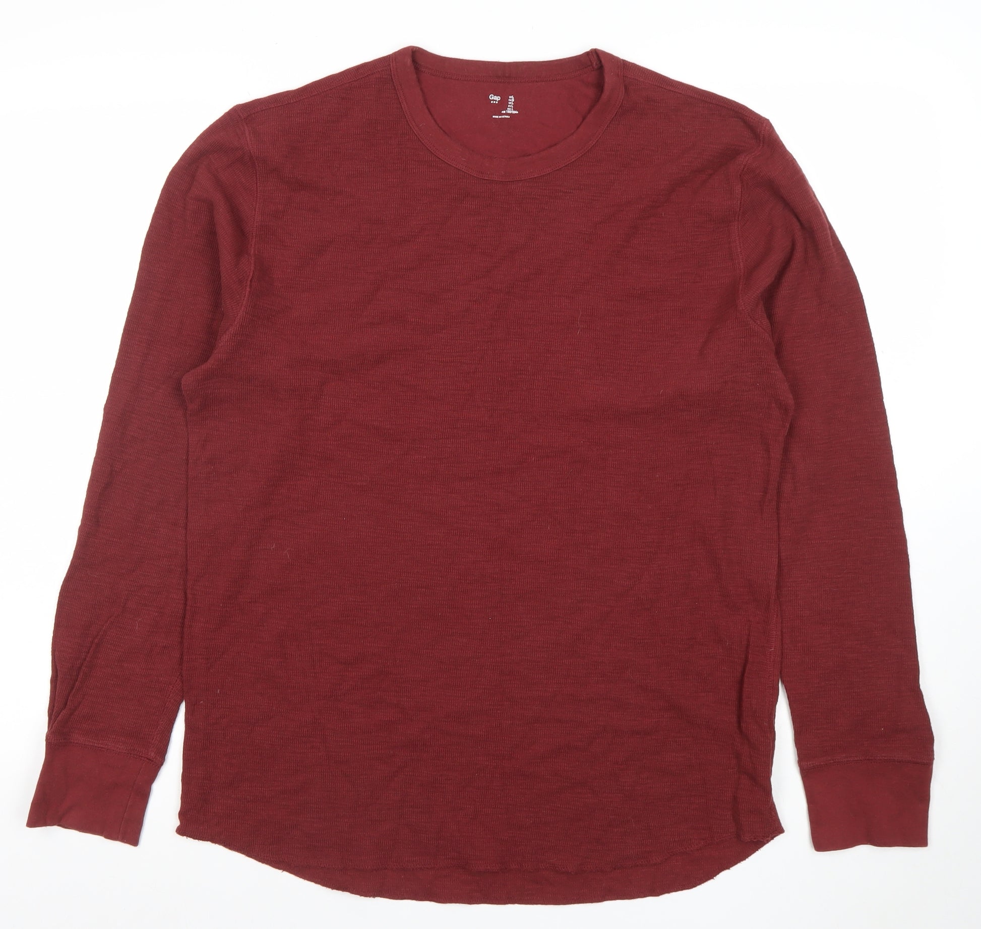 This Gap men’s long sleeve t-shirt offers a timeless, casual look perfect for everyday wear. Crafted from 100% cotton, the top is soft, breathable, and comfortable against the skin, making it ideal for layering or standalone use across the cooler months. The deep red colour adds a touch of warmth and style to any outfit, pairing effortlessly with jeans, chinos, or joggers. Designed in a regular fit with a classic crew neckline, this shirt provides a relaxed silhouette that keeps you looking laid-back yet polished. The ribbed cuffs help maintain shape over time, while the lightweight jersey knit fabric ensures all-day comfort. Well-suited for casual outings, lounging, or layering under jackets and overshirts, this Gap top is a reliable wardrobe staple. The simple solid pattern and minimal detailing give it versatility to match a variety of looks. Made for all-season wear, it transitions seamlessly from autumn through winter and spring, offering lasting quality that Gap is known for. Machine washable for easy care, it’s convenient and practical without compromising on style. This particular piece remains in very good pre-owned condition, showing only minor signs of wear with no marks or damages, reflecting careful previous use. Perfect for the man seeking comfort, simplicity, and enduring appeal in his casual wardrobe, this Gap crew neck shirt brings dependable quality without fuss. Whether for weekend comfort or layering during chilly days, it’s a smart, low-maintenance choice offering both feel and function at great value. Pick up this Gap men’s red cotton t-shirt and experience durability, softness, and classic design that fits effortlessly into your modern wardrobe.