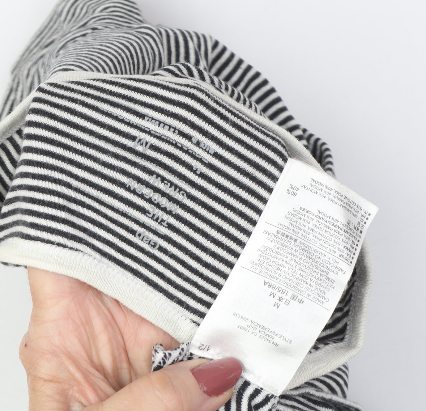 Elevate your wardrobe with this stylish and versatile men's medium T-shirt, featuring a modern crew neck design and short sleeves for effortless comfort. Expertly crafted from a luxurious blend of cotton, modal, and elastane, this T-shirt offers a comfortable fit that feels soft against the skin and provides subtle stretch for ease of movement. Its iconic black and white striped pattern brings a touch of sophistication and classic appeal, making it perfect for pairing with jeans or shorts. Whether you’re heading out for a casual day out or layering under a jacket, this T-shirt ensures style and practicality. Enjoy easy-care convenience with its machine washable fabric, designed to maintain its quality wash after wash. This top, manufactured in the 2020s, is in excellent condition with minimal wear and displays no noticeable defects. Experience unmatched comfort and style with this timeless piece, ideal for any time of the year.